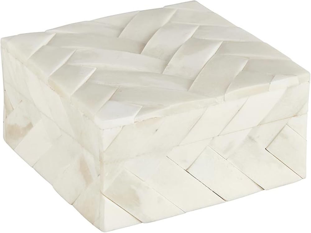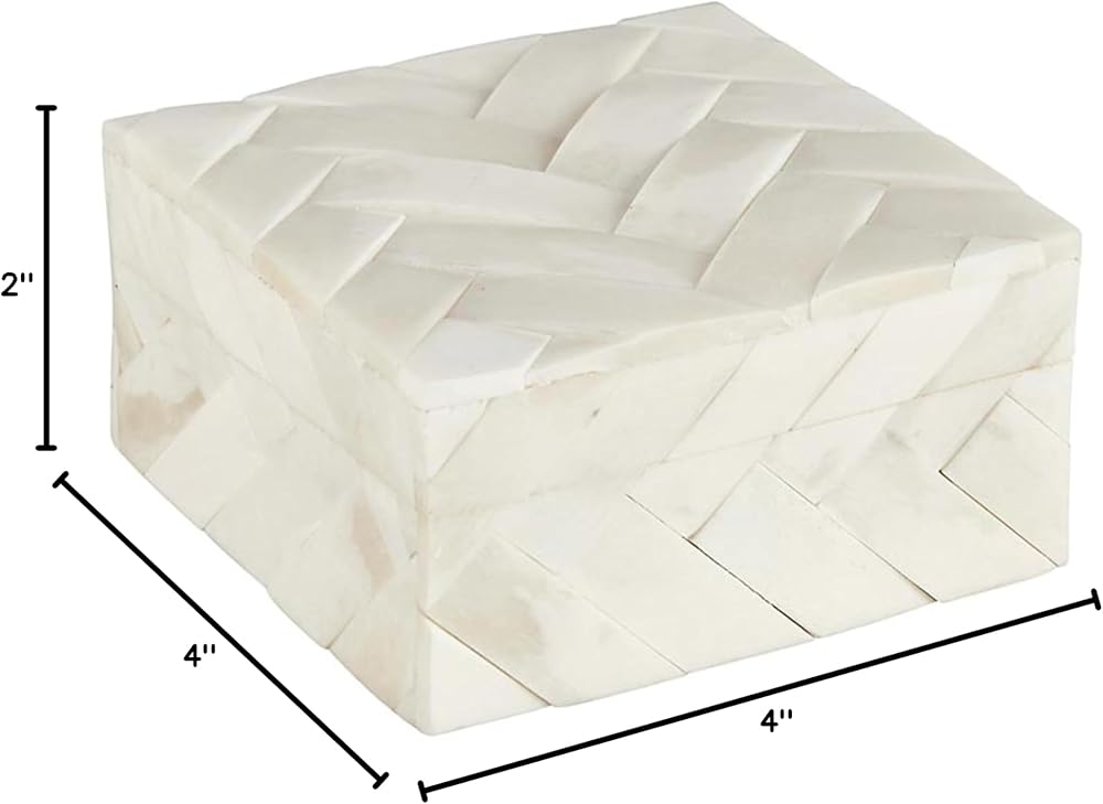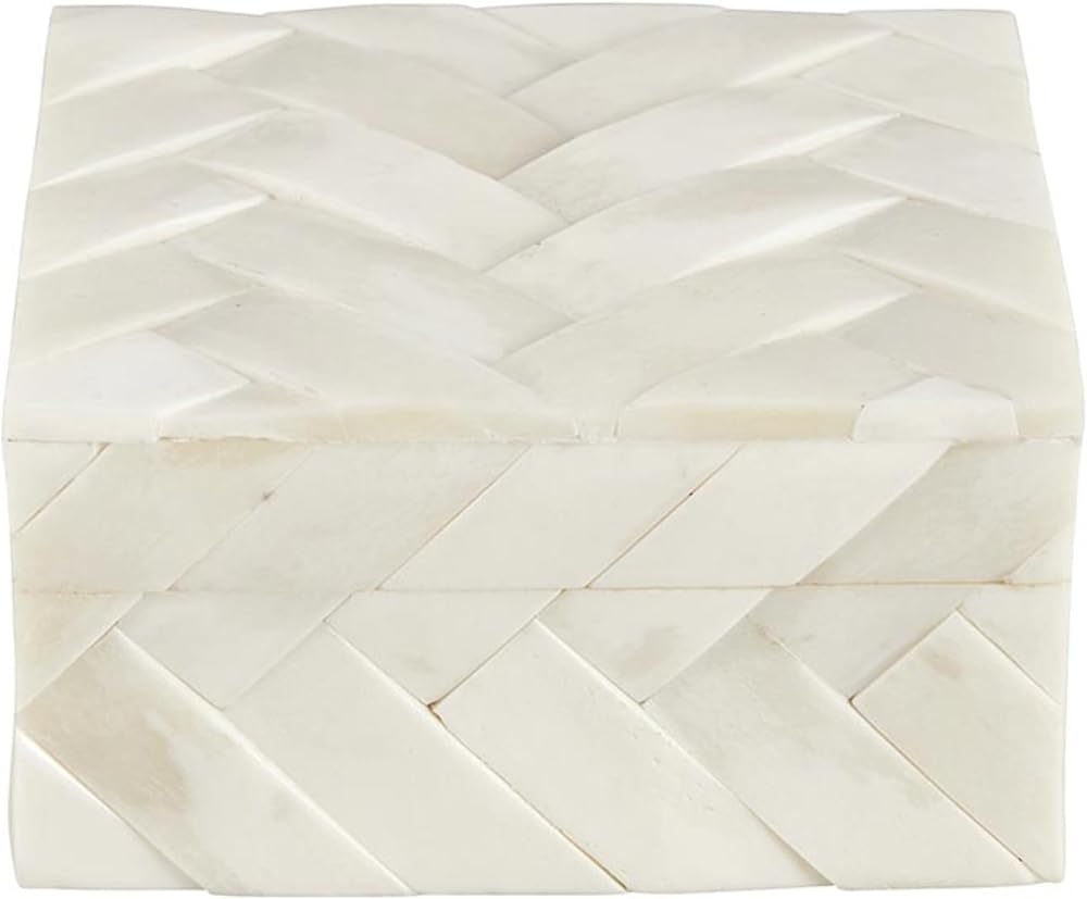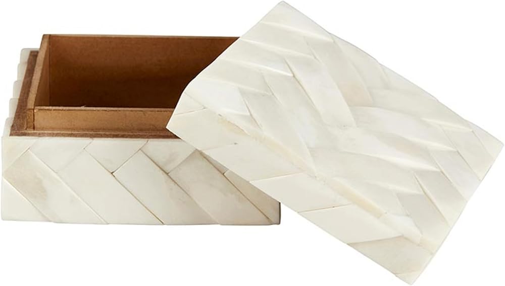 KEEPSAKE BOX Inlaid bone trinket box with lid is a sleek way to store makeup, cosmetics, jewelry, or mementos, or other small items