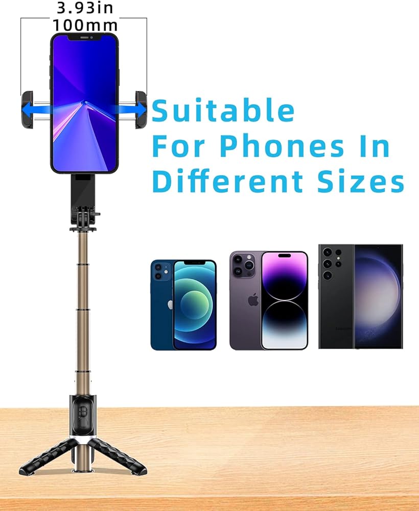 حامل ثلاثي القوائم للهاتف مع جهاز تحكم عن بعد - يمكن توزيع الجزء المحمول، الجزء السفلي من مثبت جيمبال هذا، وتحويله إلى حامل ثلاثي صغير للهاتف؛ يمكن أيضًا إزالة وحدة التحكم الموجودة على المقبض، حتى تتمكن من التحكم عن بعد في جيمبال وكاميرا هاتفك لالتقاط الصور ومقاطع الفيديو لنفسك؛ العديد من منشئي محتوى فيديو اليوتيوب ومدونات الفيديو وتيك توك يحبون هذه الميزة ويعتقدون أنها مريحة للغاية