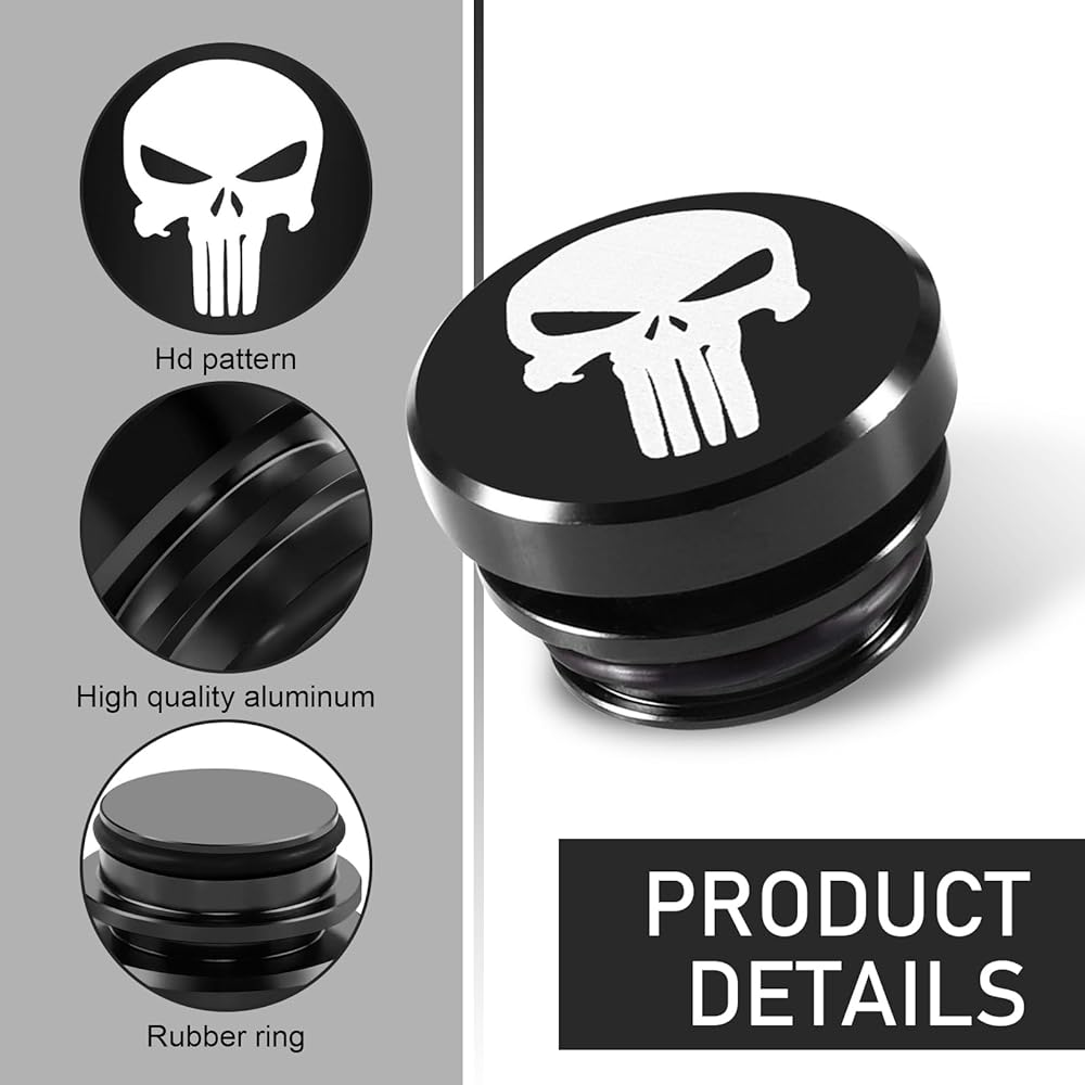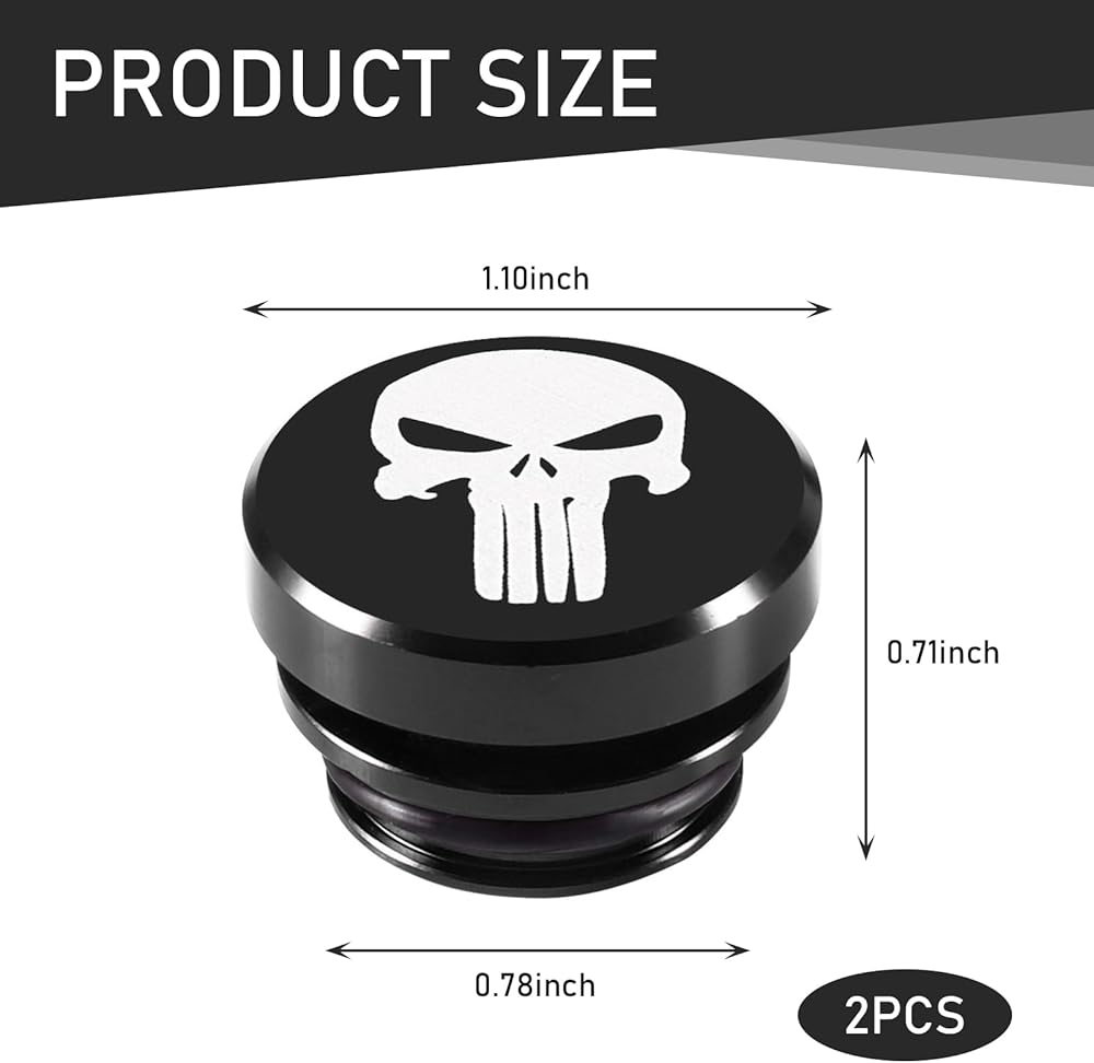 Crynod 2 PCS Car Metal Cigarette Lighter Cover, Personalized Skull Decoration Cigarette Lighter Plug Replacement, Anti-scratch Dustproof Sealing Protector with Rubber Ring, Universal for Cars (Black)