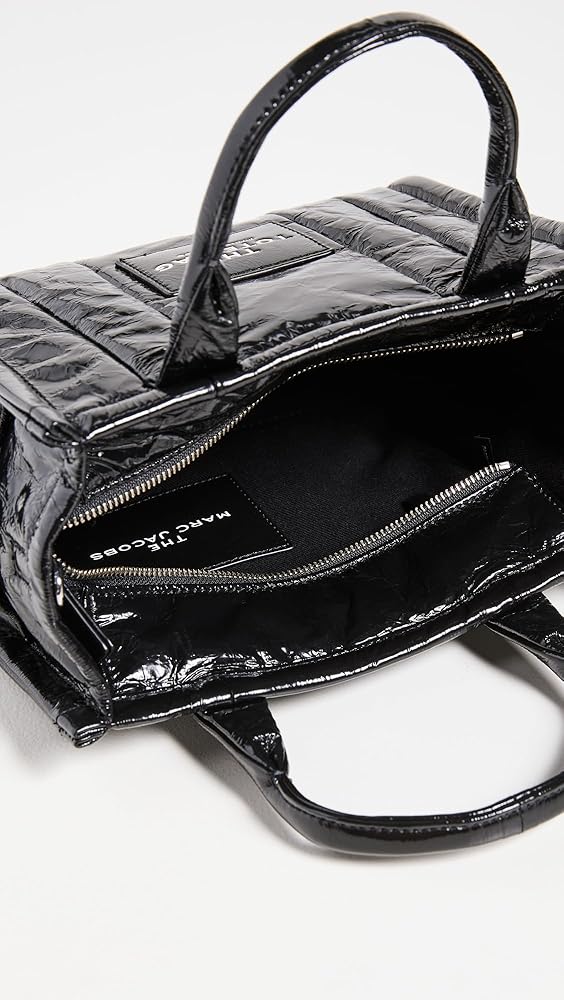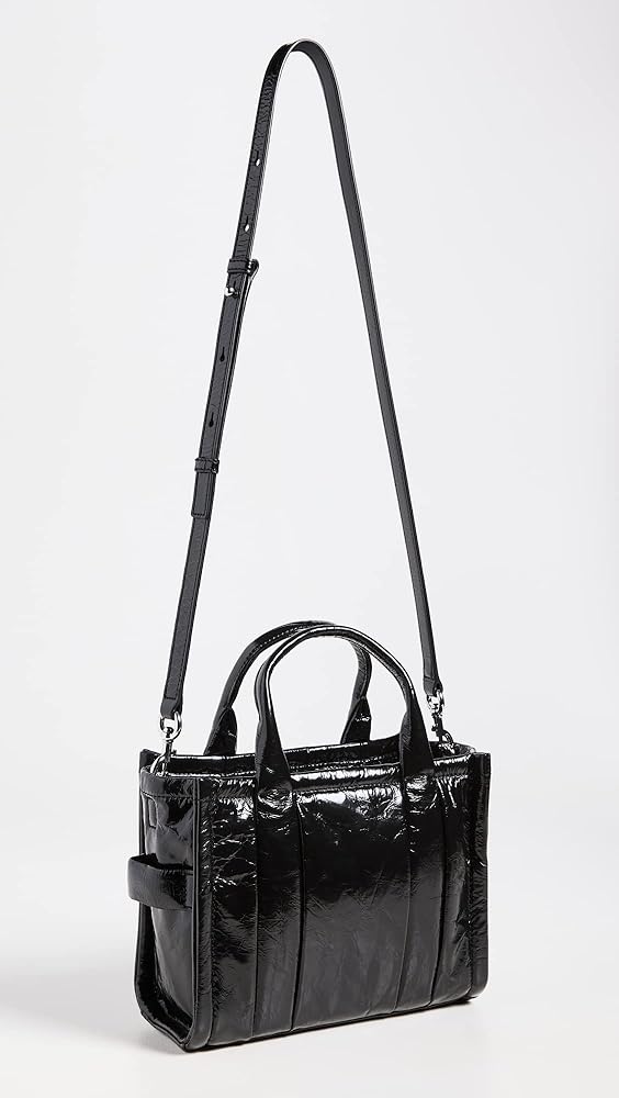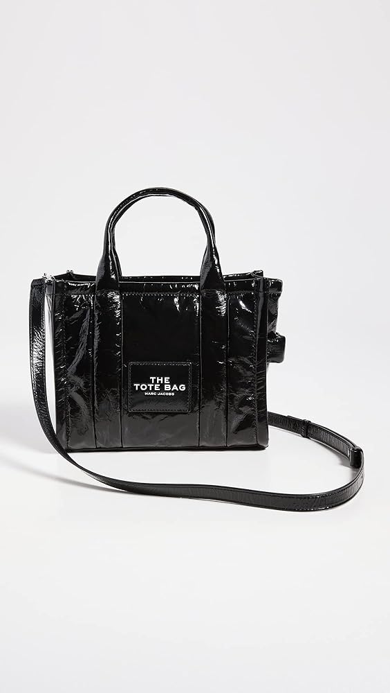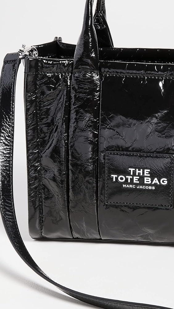 It's not just a tote bag, it's The Crinkle Leather Mini Tote Bag by Marc Jacobs. Easy top handles. Adjustable strap provide convenient carrying options. This compact tote that folds flat for storage or travel. Structured silhouette with flat base for stability. Zipped closure. One zip and one slip pocket inside. Dust bag included. Made from all man-made materials.