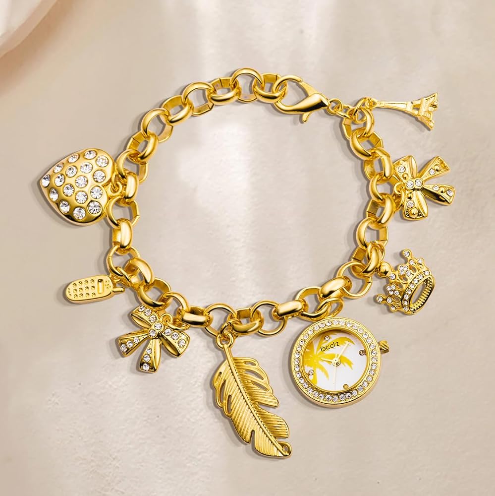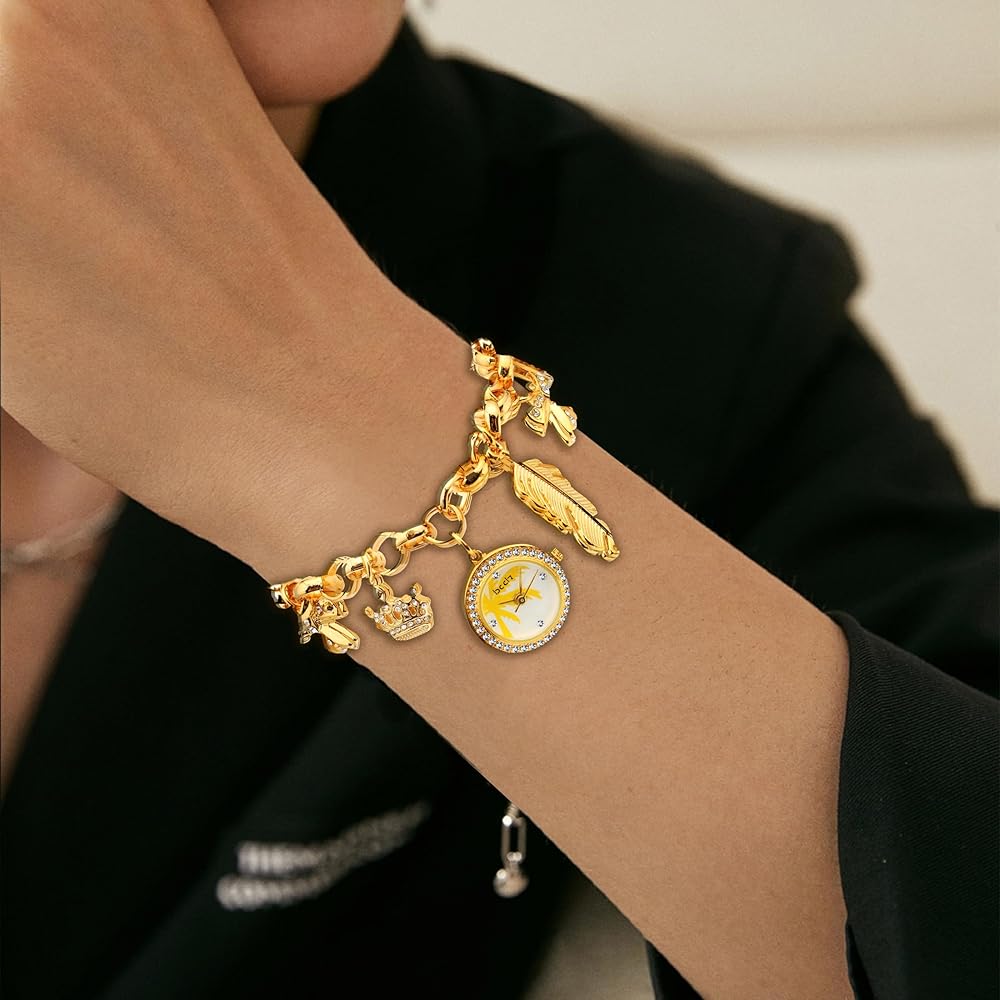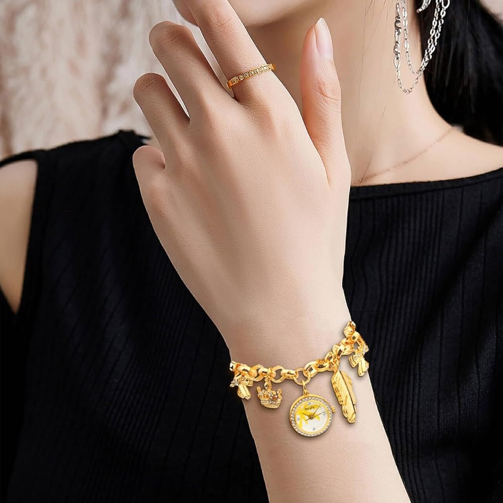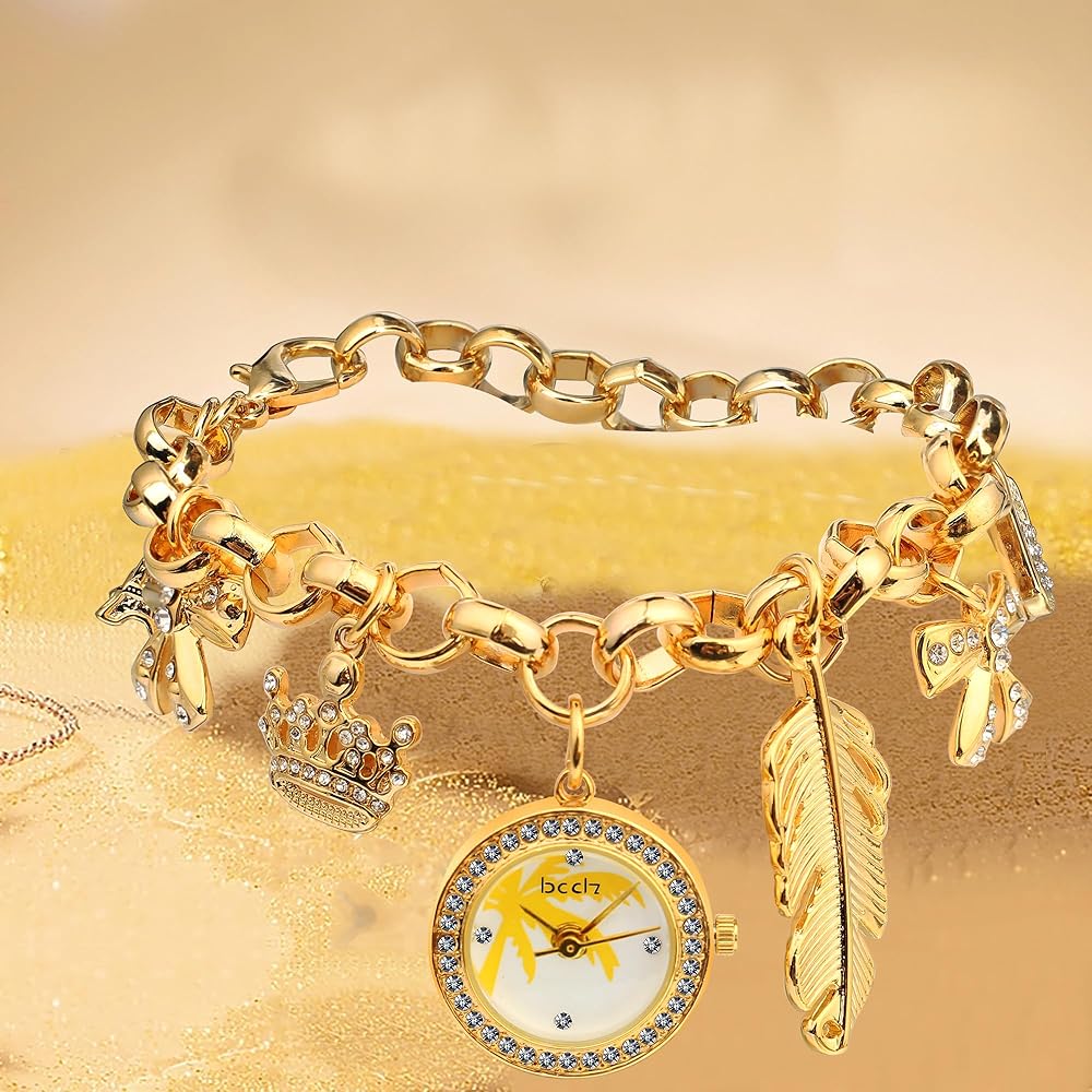 ساعة سوار ساحرة مع سلسلة تتميز بالعديد من السحر المميز وقرص الساعة المتدلي