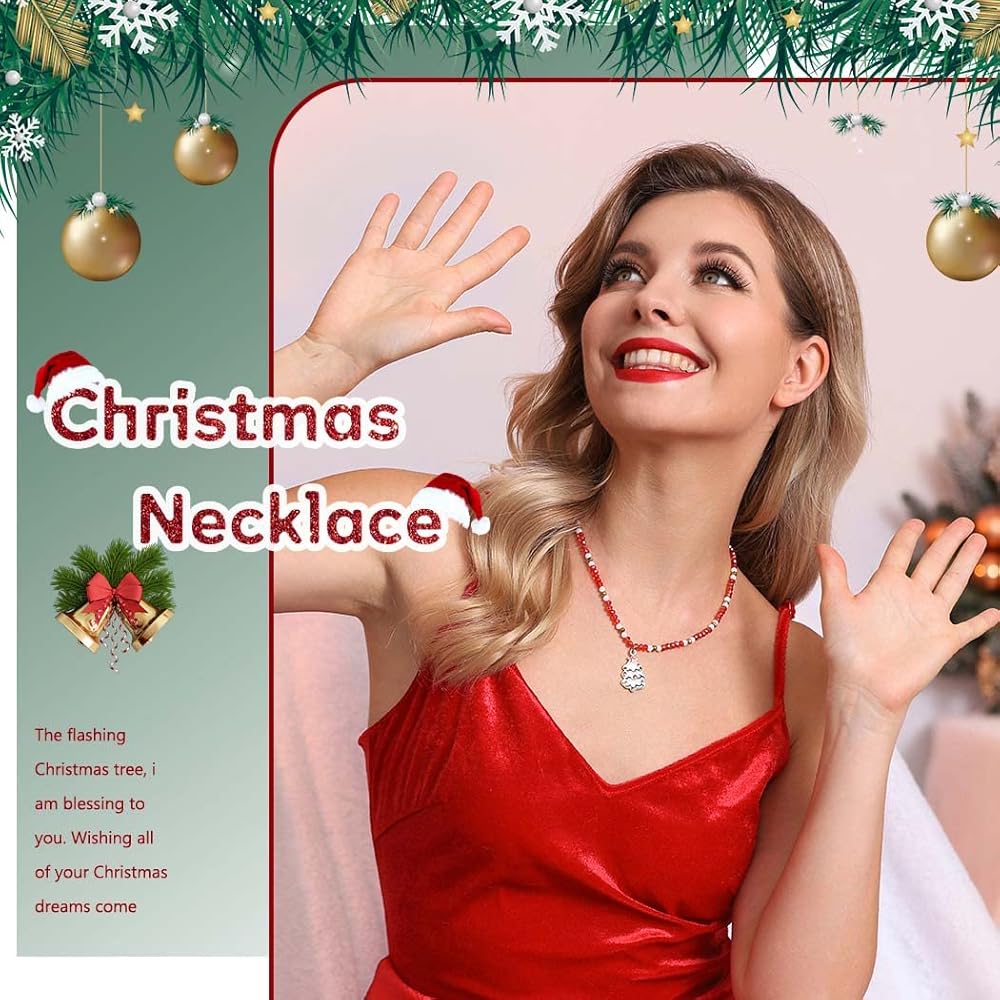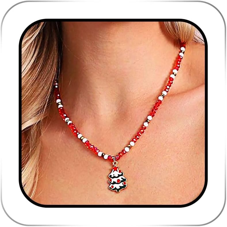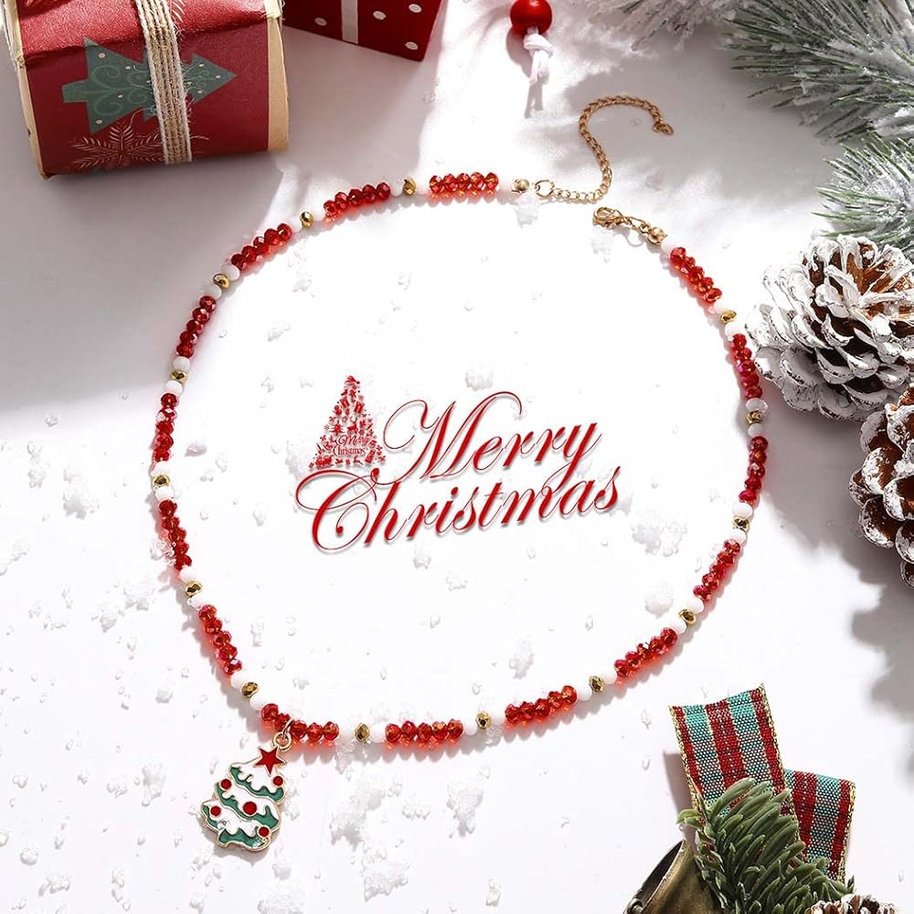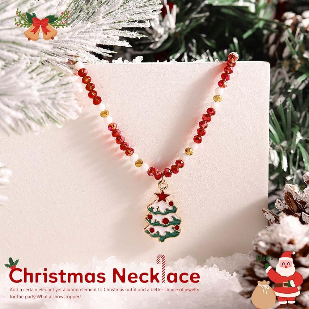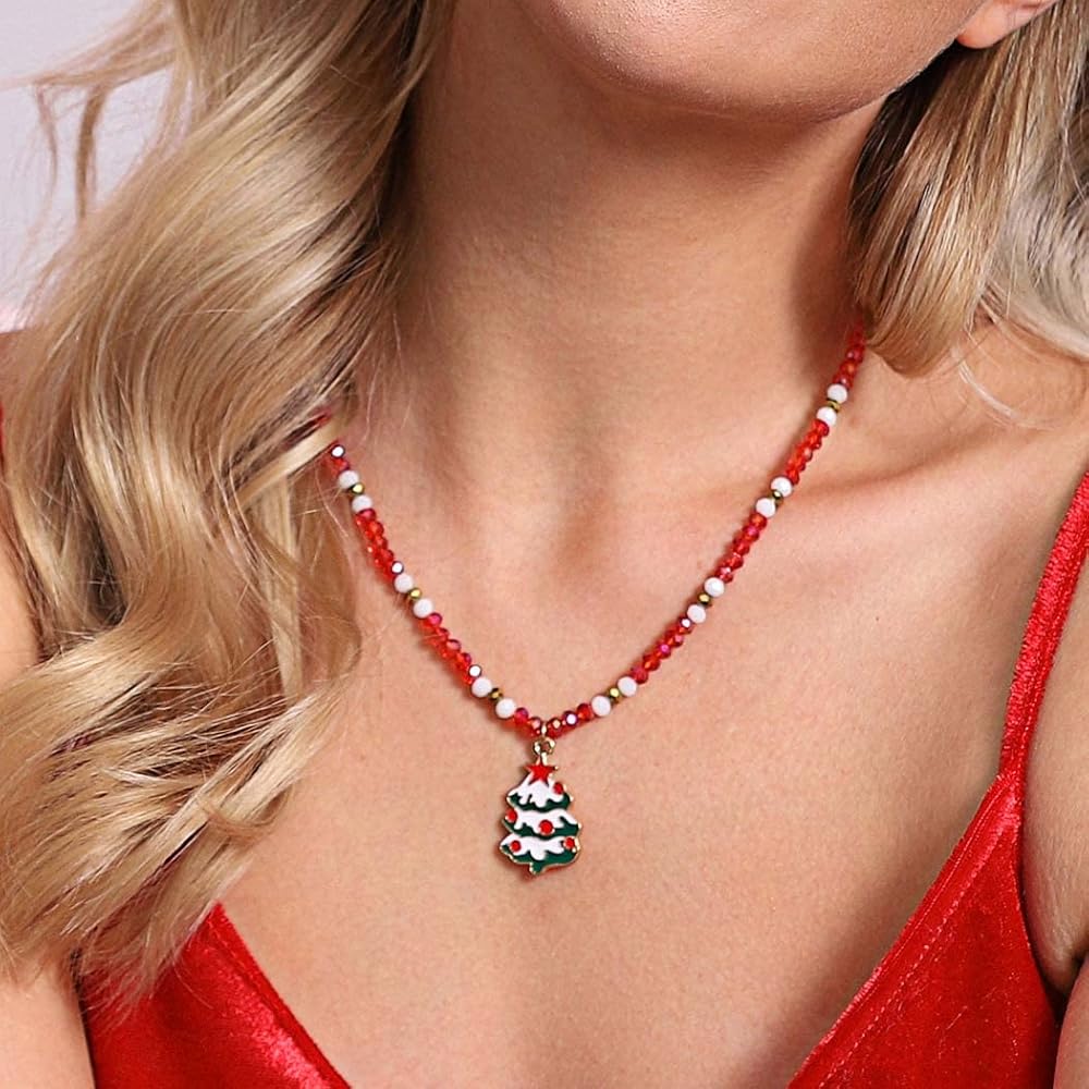 Glamorous Christmas beaded short necklace features a tree pendant in the middle, add a certain cute and elegant element to Christmas outfit and a ideal choice of neck jewelry for the party,What a beautiful!!!