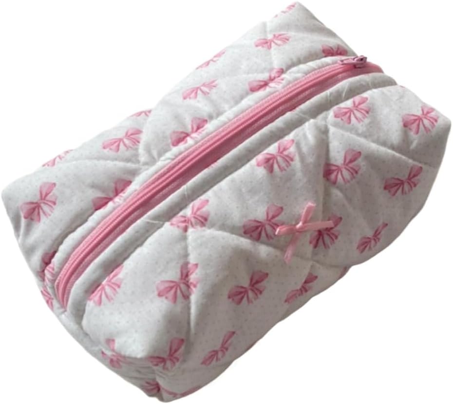 • حقيبة مكياج مبطنة أنيقة ورائعة على شكل فيونكة Y2k مثالية لتنظيم أساسيات المكياج الخاصة بك.