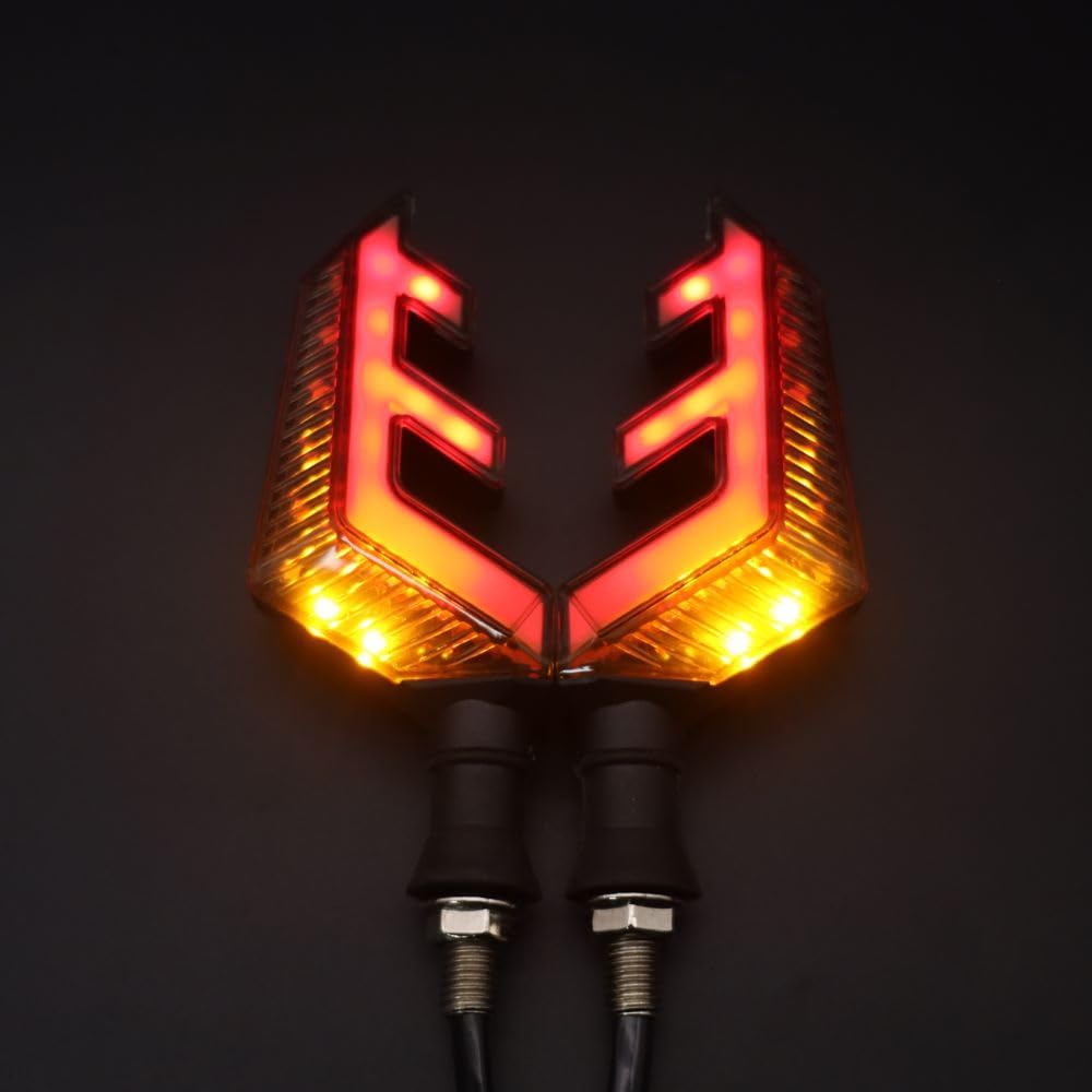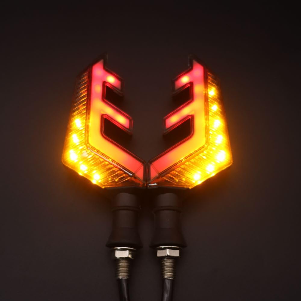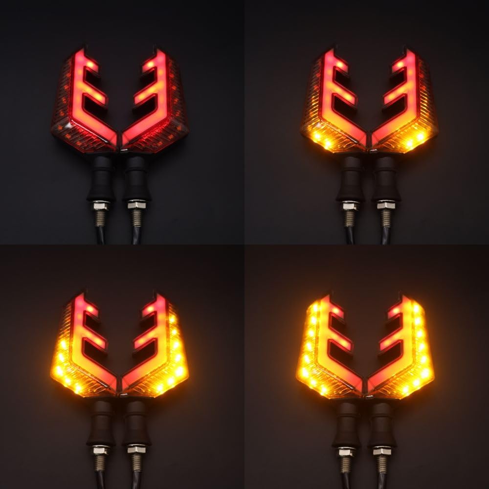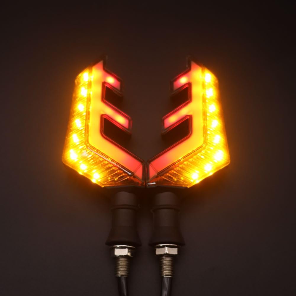 2 دراجة نارية عالمية LED إشارة الانعطاف على شكل قرن غزال ثنائي اللون أمامي وخلفي أضواء مؤشر، تدفق كهرماني وأضواء حمراء أثناء النهار، مقاومة للماء 12 فولت مقبض دراجة نارية LED ضوء