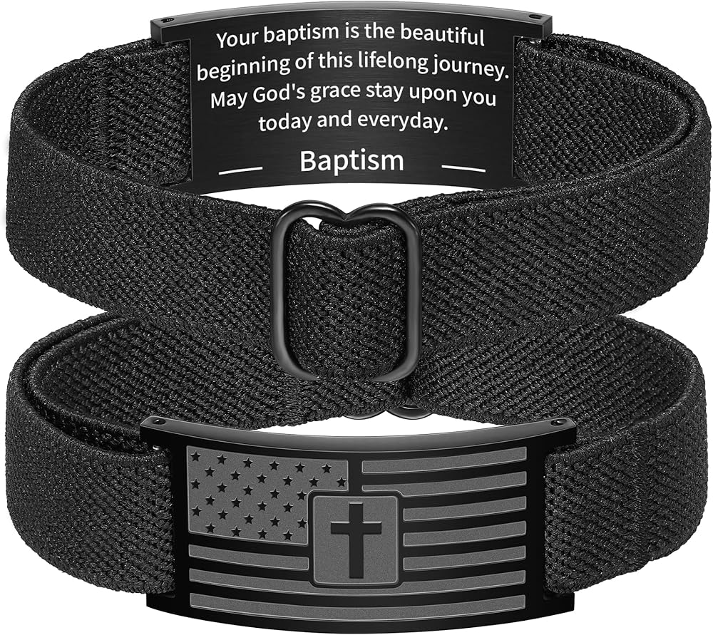 • يتميز هذا السوار المصمم بشكل فريد بصليب العلم الأمريكي البارز على الجهة الأمامية وآية الكتاب المقدس الملهمة المنقوشة على الظهر، مما يرمز إلى مزيج مثالي من الوطنية والإيمان.