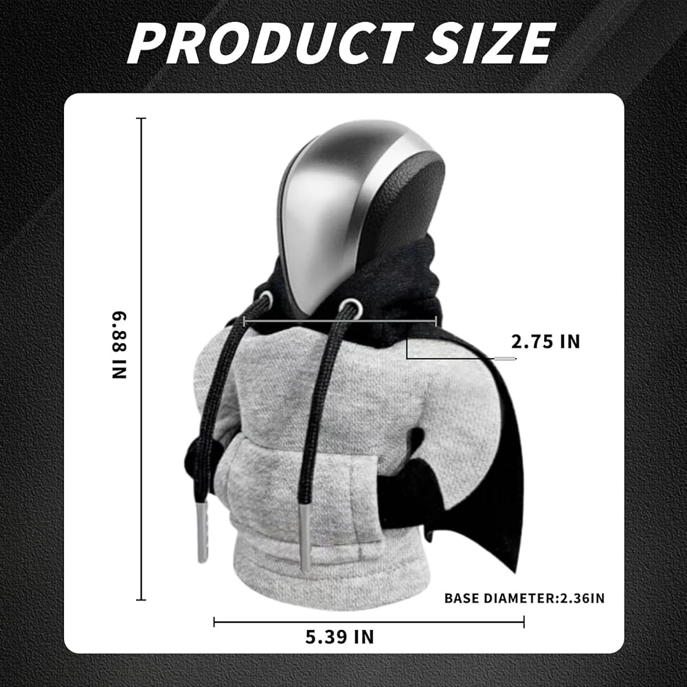 • Cute and Functional: Combines cute design with practical protection; shields your gear shifter from wear and tear; enhances the look of your vehicle with a black cape mini shifter hoodie