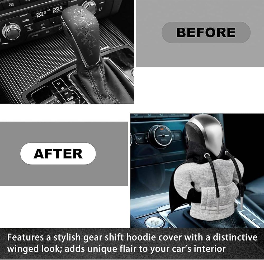• Distinctive Winged Look: Features a stylish gear shift hoodie cover with a distinctive winged look; adds unique flair to your car's interior; ideal for those who love cute automotive interior accessories