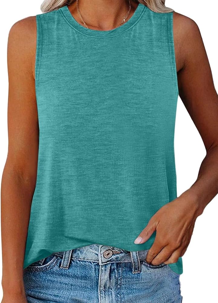 • Crewneck Tank Top: tank tops for women 2024; white tank top woman; womens tank tops; workout tank tops woman; crew neck tank top; curved hem tank top