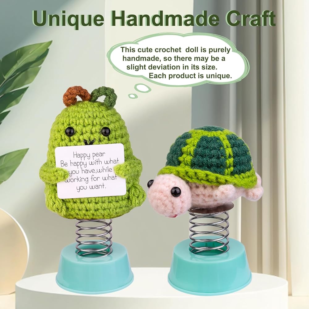 🐢 سلحفاة إيجابية فريدة من نوعها: تتميز دمية السلحفاة الإيجابية ببطاقة تشجيع عاطفية وقاعدة زنبركية. ستوفر لك هذه السلحفاة الكروشيه دعمًا عاطفيًا قويًا عندما تشعر بالضغط والقلق والحزن والتوتر. والأمر الأكثر إثارة للاهتمام هو أنها ستهتز أثناء القيادة.