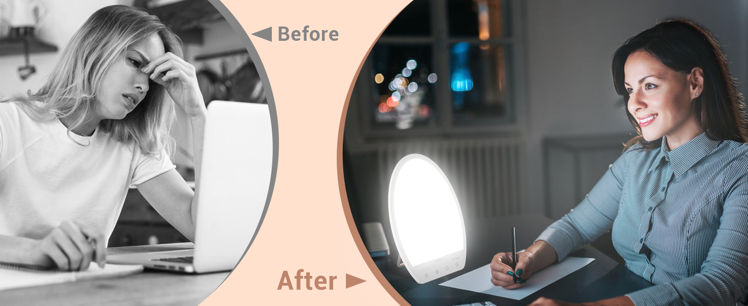 [16,000 Lux Light Theapy Lamp] إن إيقاظ جسمك من الطقس القاتم يبدأ باستخدام مصباح الشمس Comfytemp! يوفر مصباح الشمس ما يصل إلى 16,000 لوكس (عند 6 بوصات)، ضوء كامل الطيف للعلاج بالضوء الطبيعي الخالي من الوهج والوميض. يحتوي مصباح الضوء الخاص بنا على وظيفة ذاكرة، نوصي بتجنب النظر مباشرة إلى الضوء قبل التشغيل إذا كنت تستخدم 16000lux قبل إيقاف التشغيل.