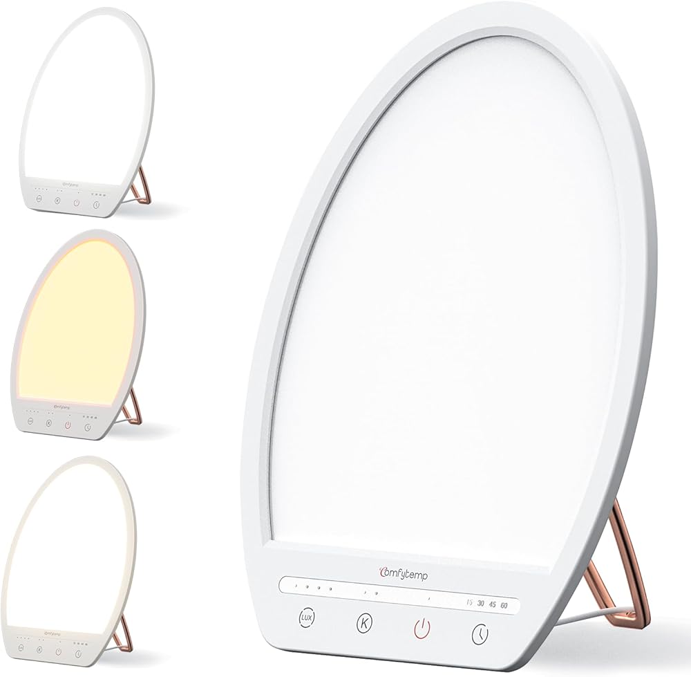 مصباح العلاج بالضوء كومفيتيمب، 16000 لوكس طيف كامل من ضوء النهار، صندوق العلاج بالضوء مع حامل قابل للتعديل 180 درجة، 4 سطوع ضوء، 3 درجة حرارة اللون، 4 مؤقت، تحسين النوم ورفع الحالة المزاجية