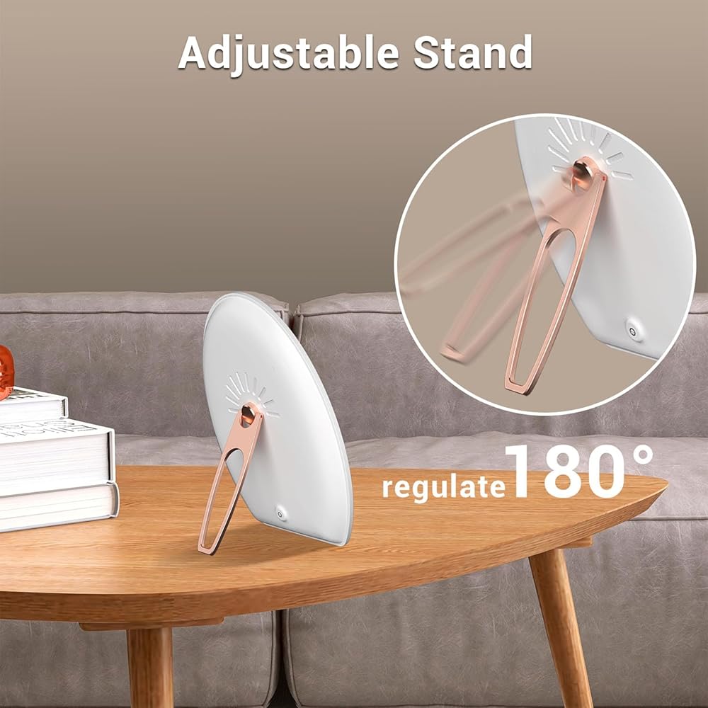 [حامل قابل للتعديل 180 درجة] يبلغ حجم مصباح العلاج بالضوء الشمسي 7.44 بوصة × 9.45 بوصة ويتميز بحامل قابل للتعديل 180 درجة، مما يسمح لك بوضعه على سطح المكتب. مثالية للاستخدام المنزلي والمكتبي والمدرسي. مصباح النهار الخاص بنا قابل للتبديل باللمس، مع أزرار سريعة وسهلة الاستخدام يمكن لكبار السن أيضًا تشغيلها بسهولة.