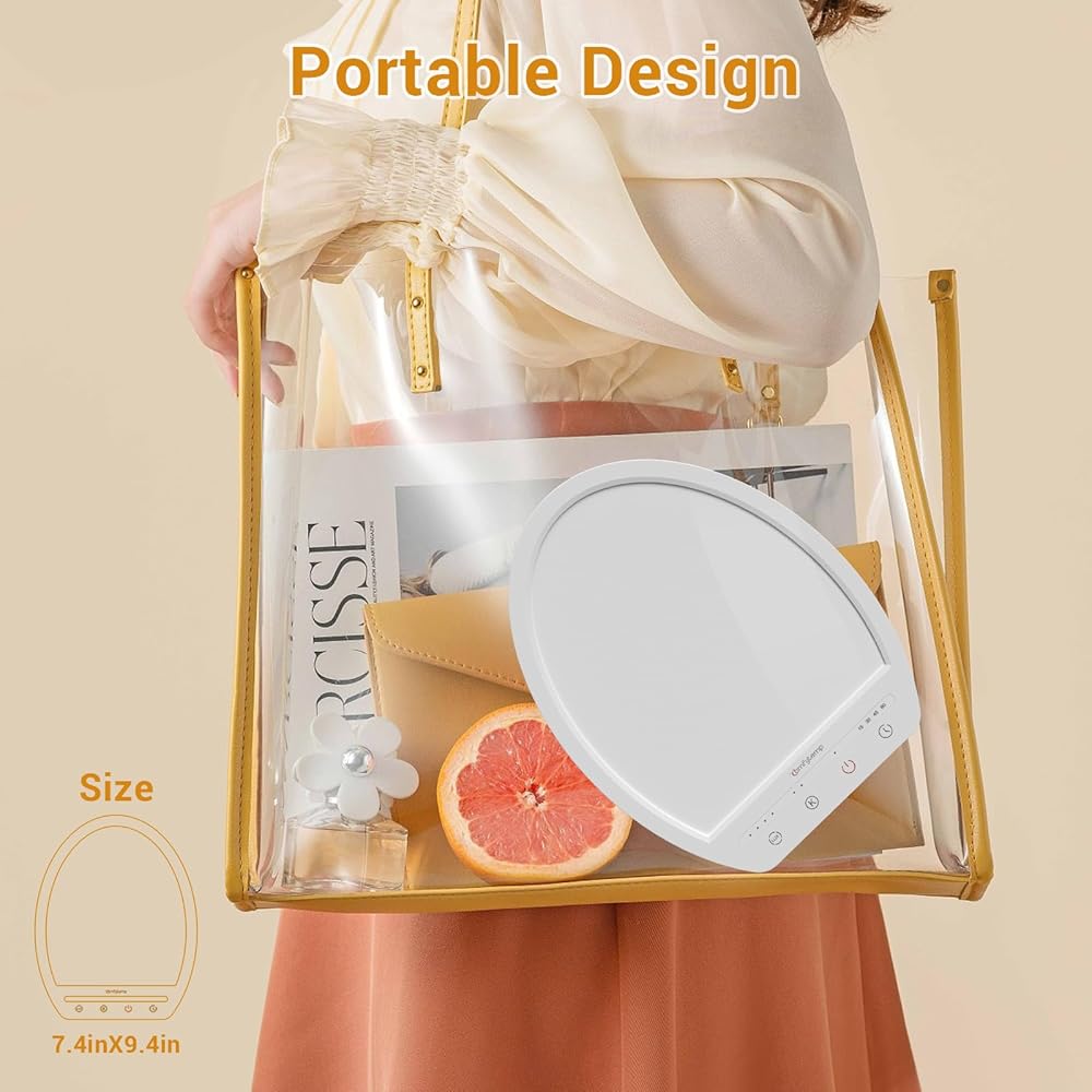 [محمول وعملي] من المهم التأكد من أن أجسادنا لديها ما يكفي من الضوء. مصباح العلاج بالضوء خفيف الوزن ومحمول. يمكنك استخدامه في المنزل أو المكتب أو اصطحابه أثناء السفر. يعد مصباح ضوء الشمس المحمول مفيدًا للعاملين في المناوبات أو كبار السن أو أي شخص يحتاج إلى مزيد من أشعة الشمس.