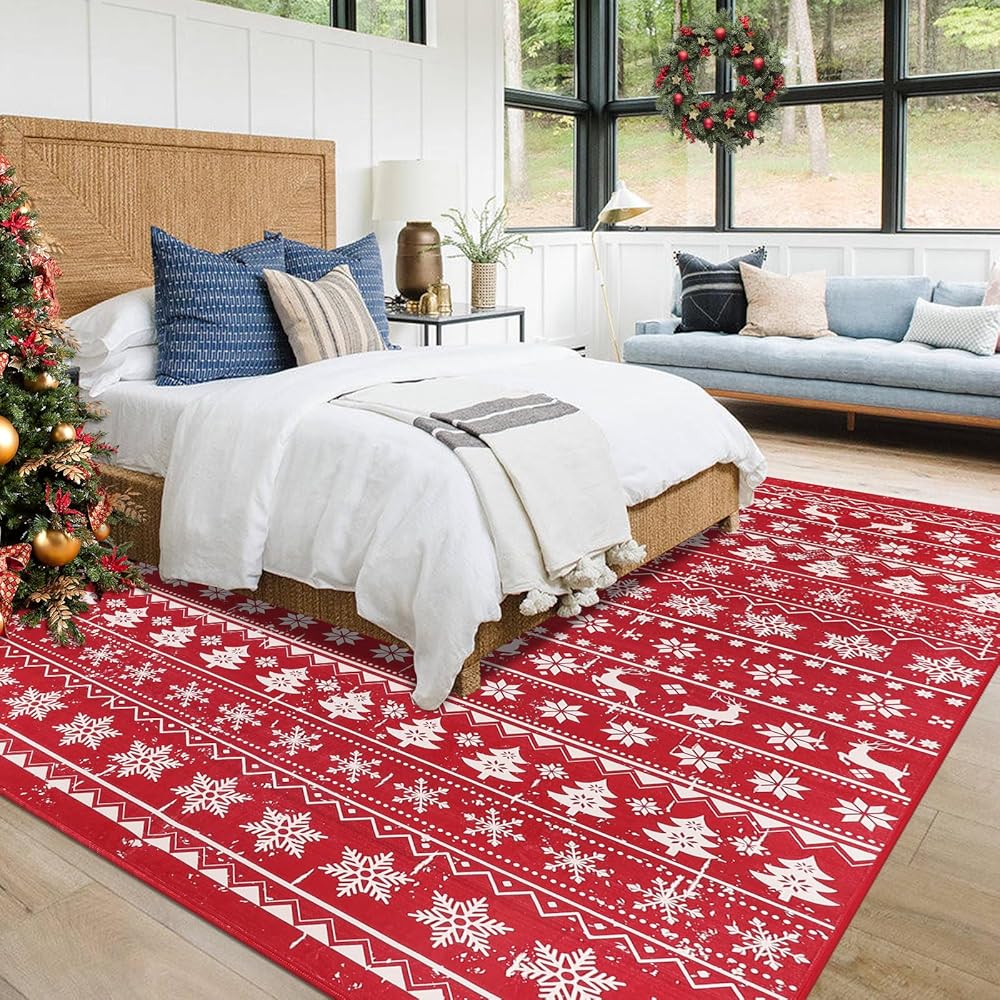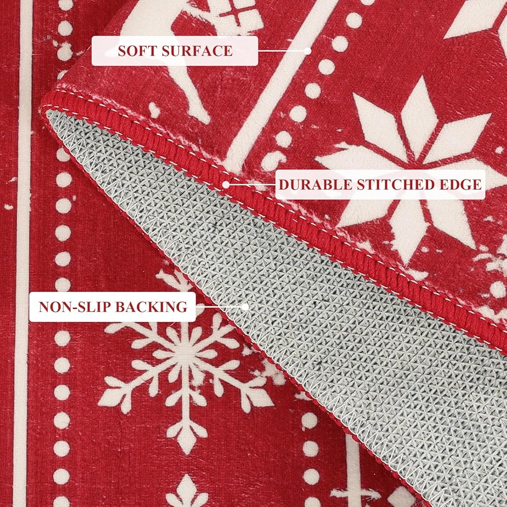غير قابلة للانزلاق: تتميز سجاد عيد الميلاد SHACOS بطبقة من المطاط اللدن حراريًا غير قابلة للانزلاق + دعامة قطنية لمنع الانزلاق، وتوفر أمانًا إضافيًا لعائلتك. لقد عززوا الحواف المتراكبة. سجادة المنطقة المتينة ستدوم لفترة طويلة