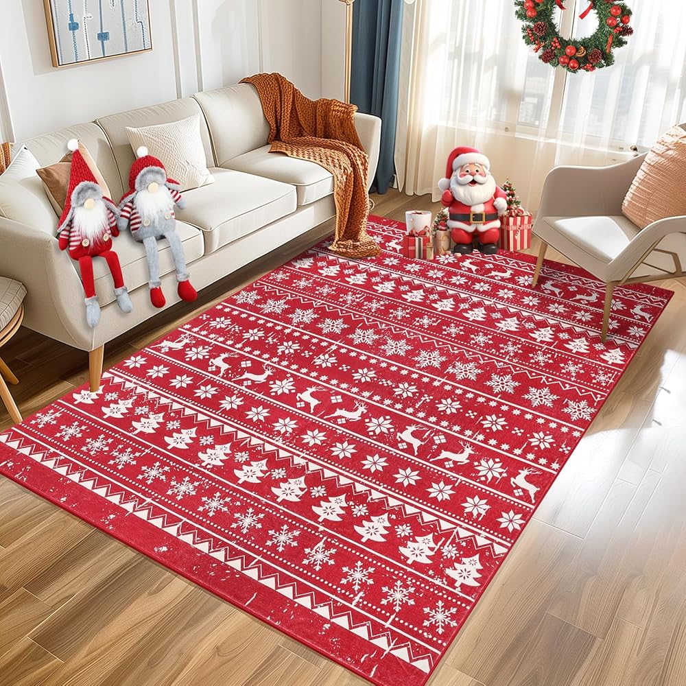 كومة منخفضة: 0.2 بوصة من الكشمير الصناعي رقيق وناعم. لن تعيق سجادة منطقة عيد الميلاد الباب أو تسبب خطر التعثر. يمكن وضع السجادة ذات الوبر المنخفض بسهولة تحت الأثاث وتمنع تراكم شعر الحيوانات الأليفة. سطح ناعم يجعلها دافئة ومريحة