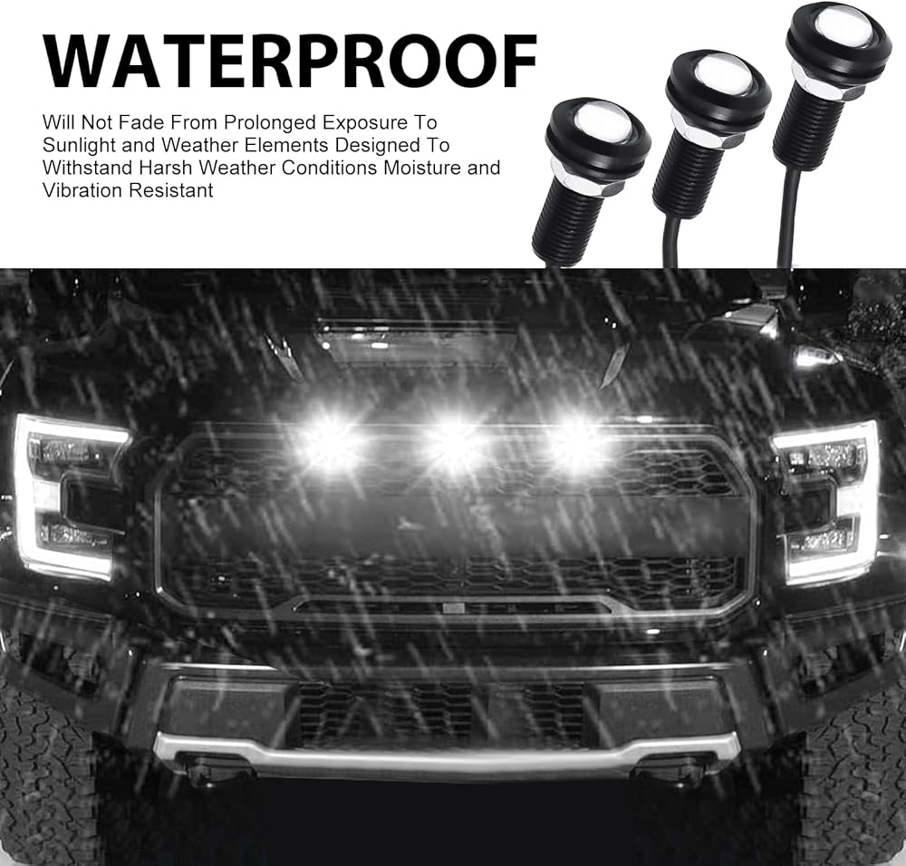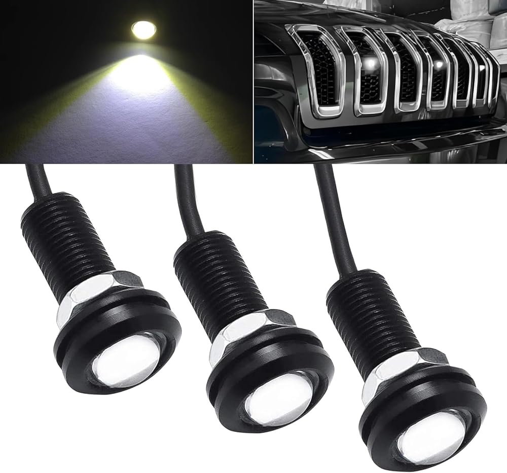 JawGrew Pack-3 Car LED Eagle Eye Light, 0.7" Waterproof Housing High Brightness DRL, 12V 6500K Front Grille Light Chassis Light with Connecting Harness, Universal for Cars Motorcycles (Black)