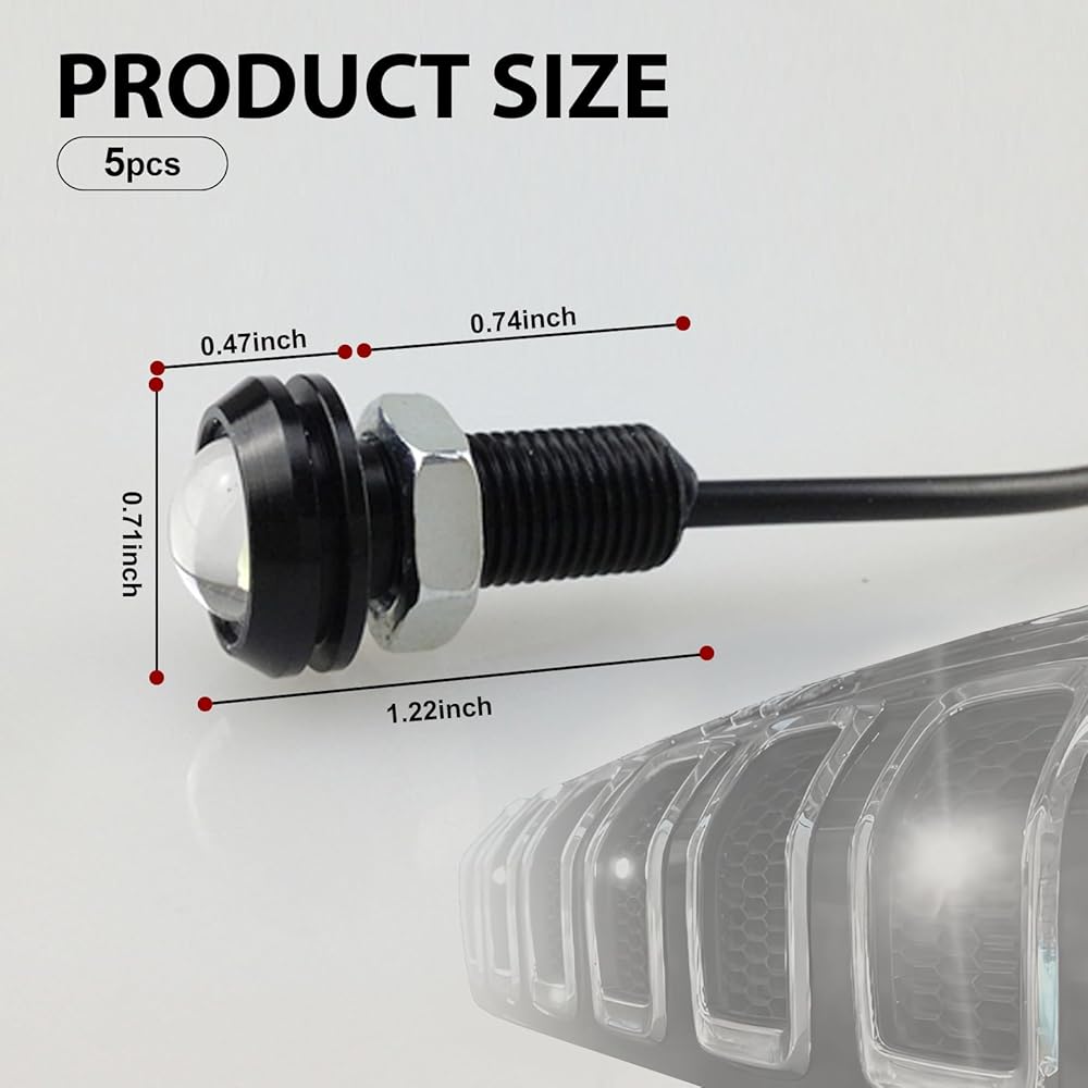Product Parameters: This LED Hawkeye light has a diameter of 0.7 inches and can adapt to many types of vehicles. The power is 9W, which can save energy. It has a wide range of uses and can be used as an atmosphere light, grille light, chassis light, etc.