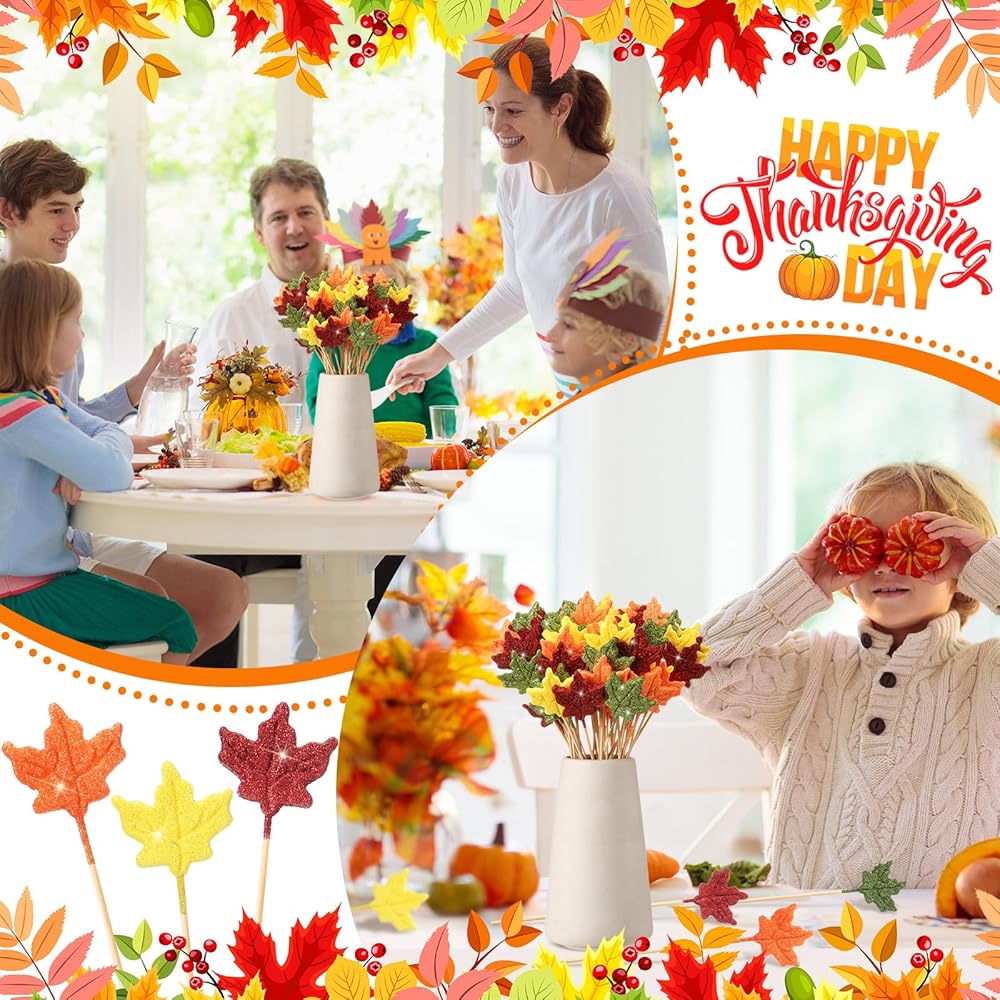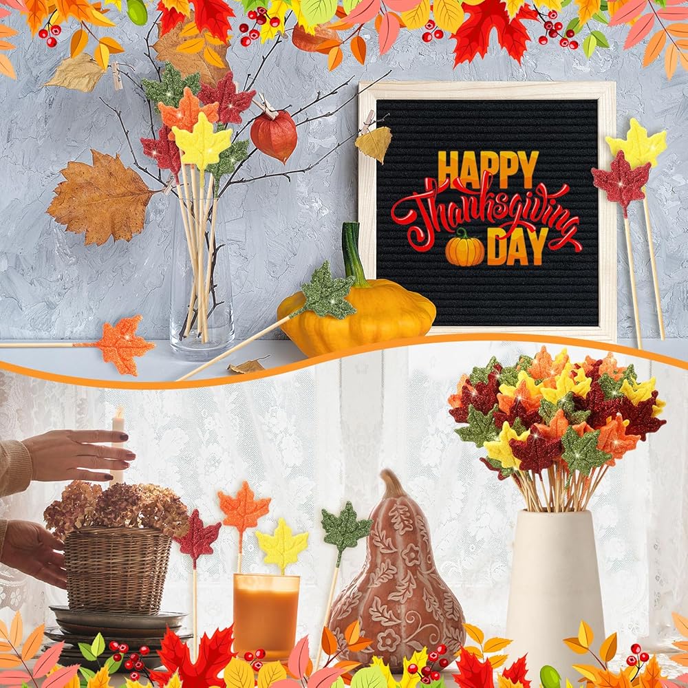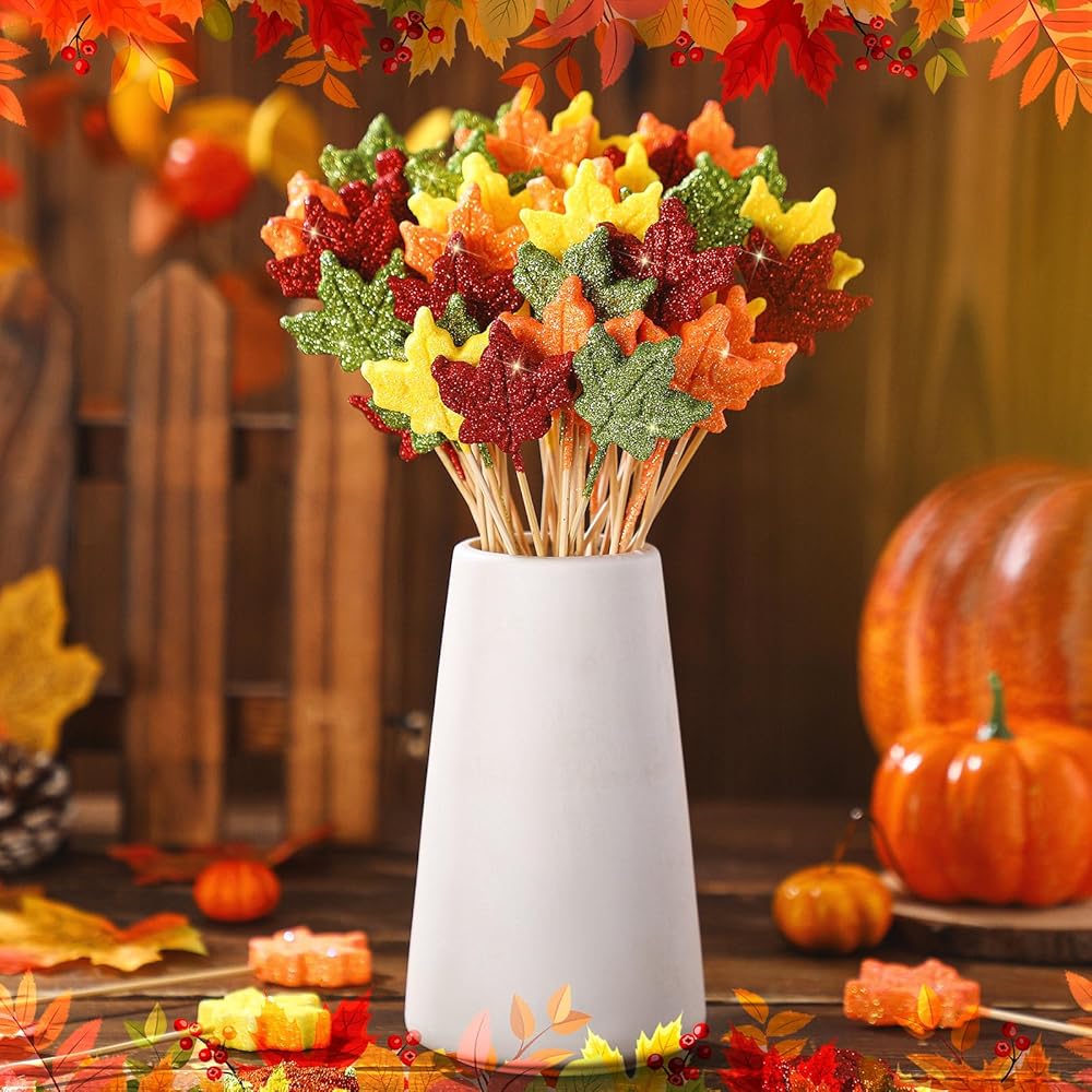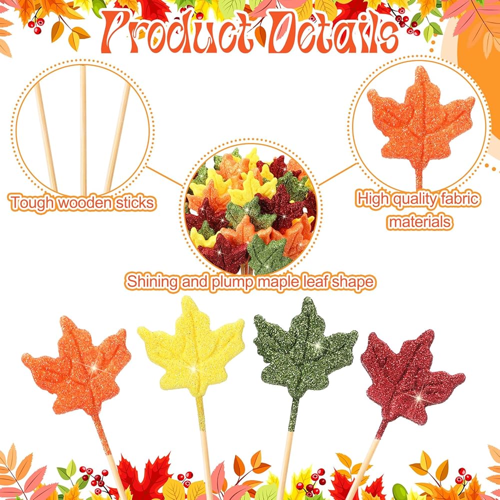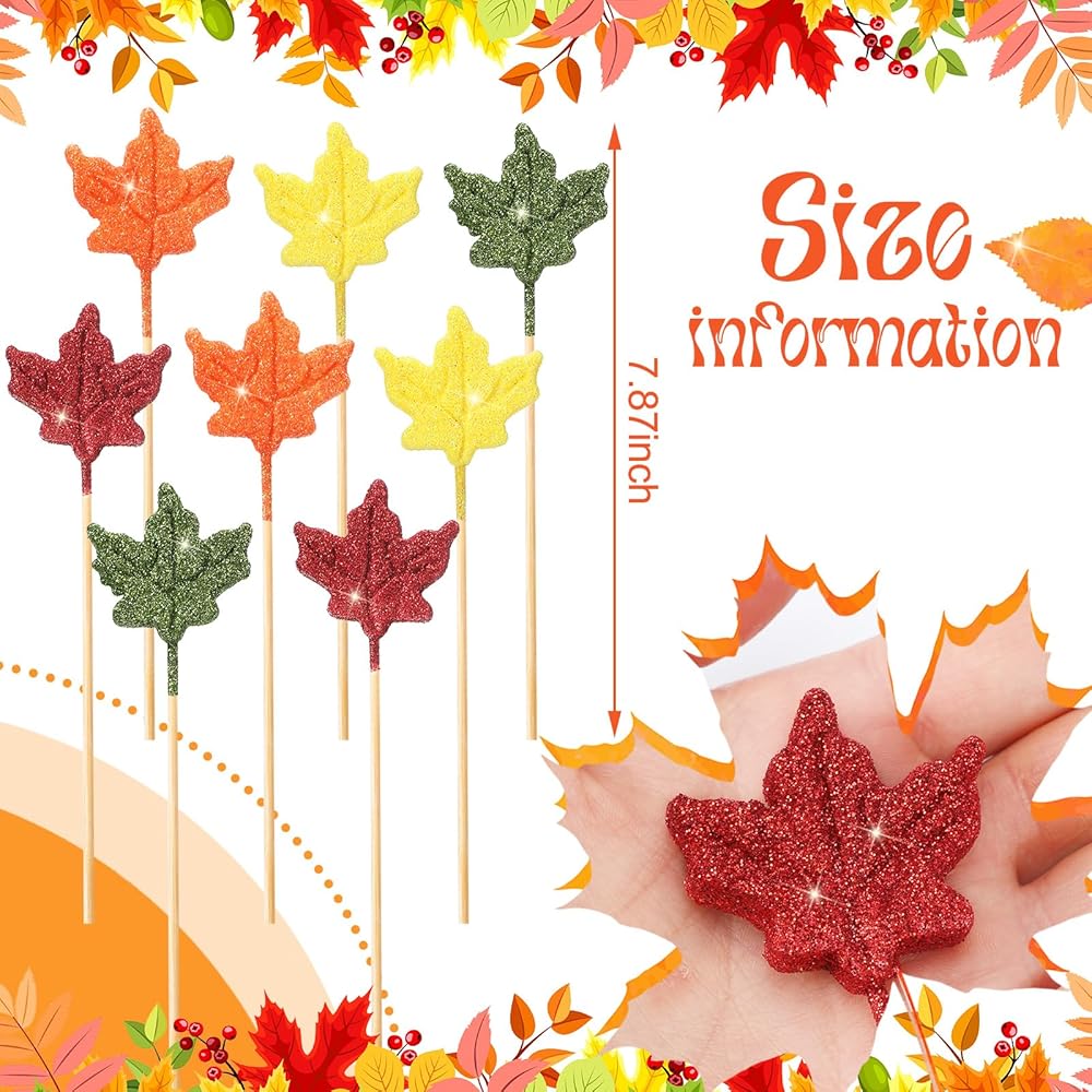 • Shimmering Style: our maple picks are painted in bright red brown, orange, cyan, yellow tones and come with glitter that reflects light on a shiny display to make your decorations more attractive and create a charming atmosphere for your party or event