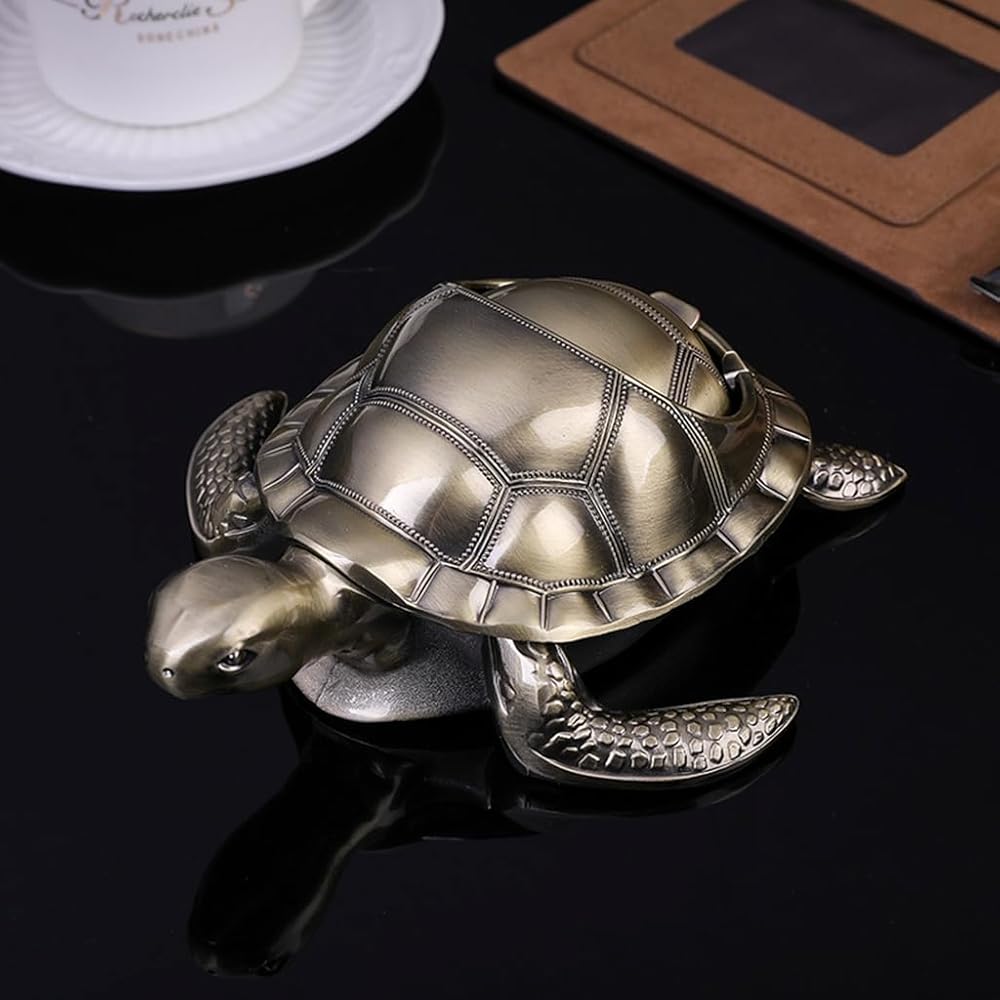 Introducing our Rustic Turtle Windproof Ashtray with Lid, a charming addition to your space with its antique-style design and retro touch. The semi-closed lid effectively contains cigarette odors, while three holder slots offer convenience. Crafted from zinc alloy, this ashtray is built to last and resist corrosion in humid conditions. Versatile and elegant, it doubles as a decorative artwork, perfect for gifting on various occasions. Measuring 7 x 6.3 x 2.7 inches and weighing 0.9 pounds, it strikes the perfect balance of sturdiness and portability for both indoor and outdoor use.