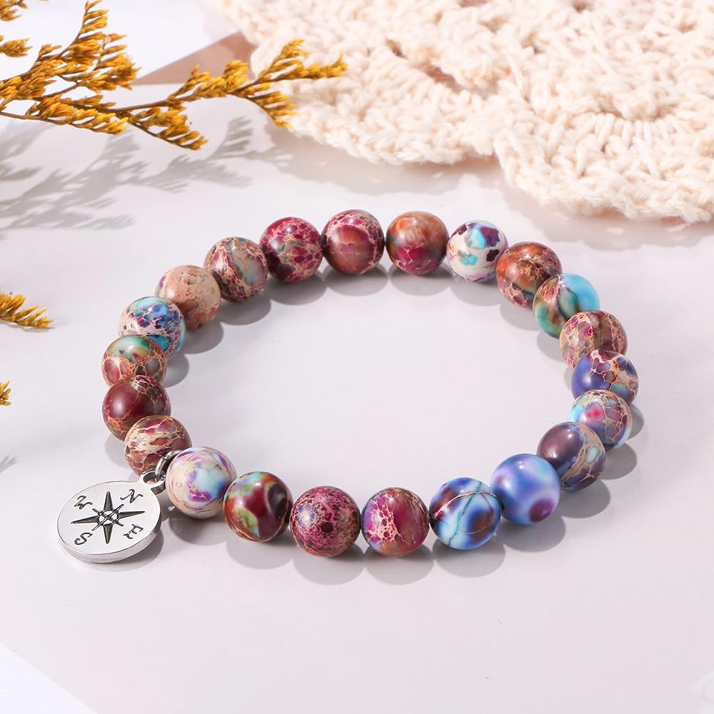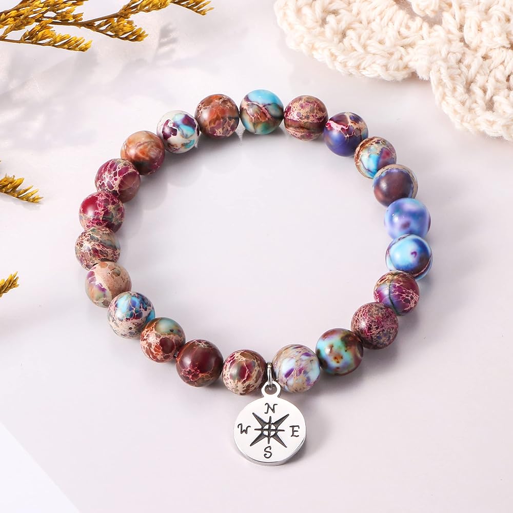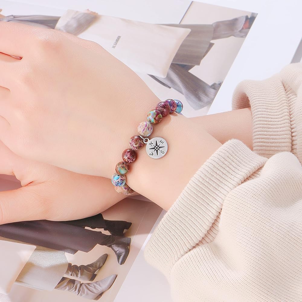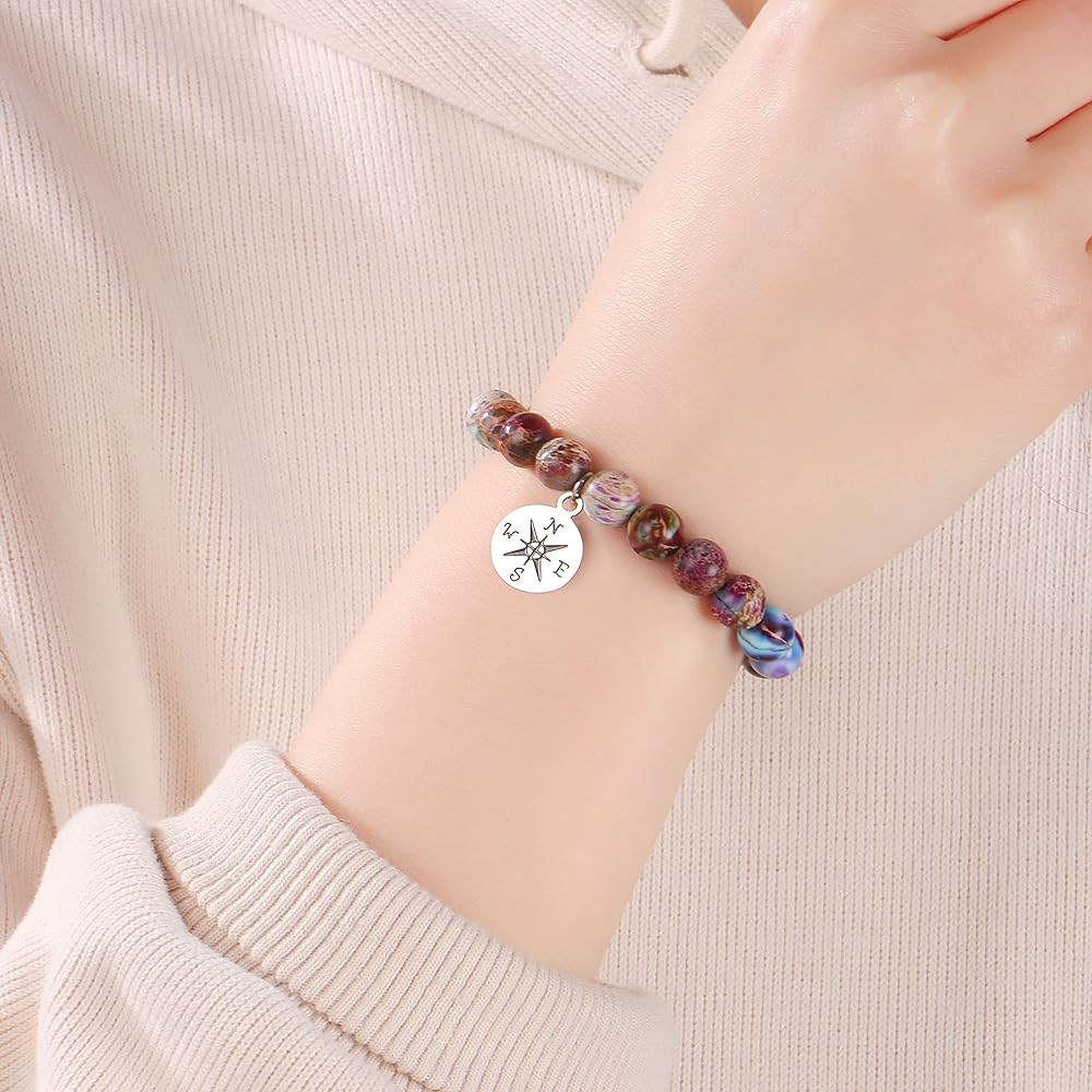 ⭐المقاس: سوار خرز من الأحجار الكريمة مقاس 17.78 سم، قابل للتمدد ليناسب معظم المعصم. خرز 8 مم مع سوار بوصلة لطيف، تذكير يمكن ارتداؤه بأنها ستجد طريقها