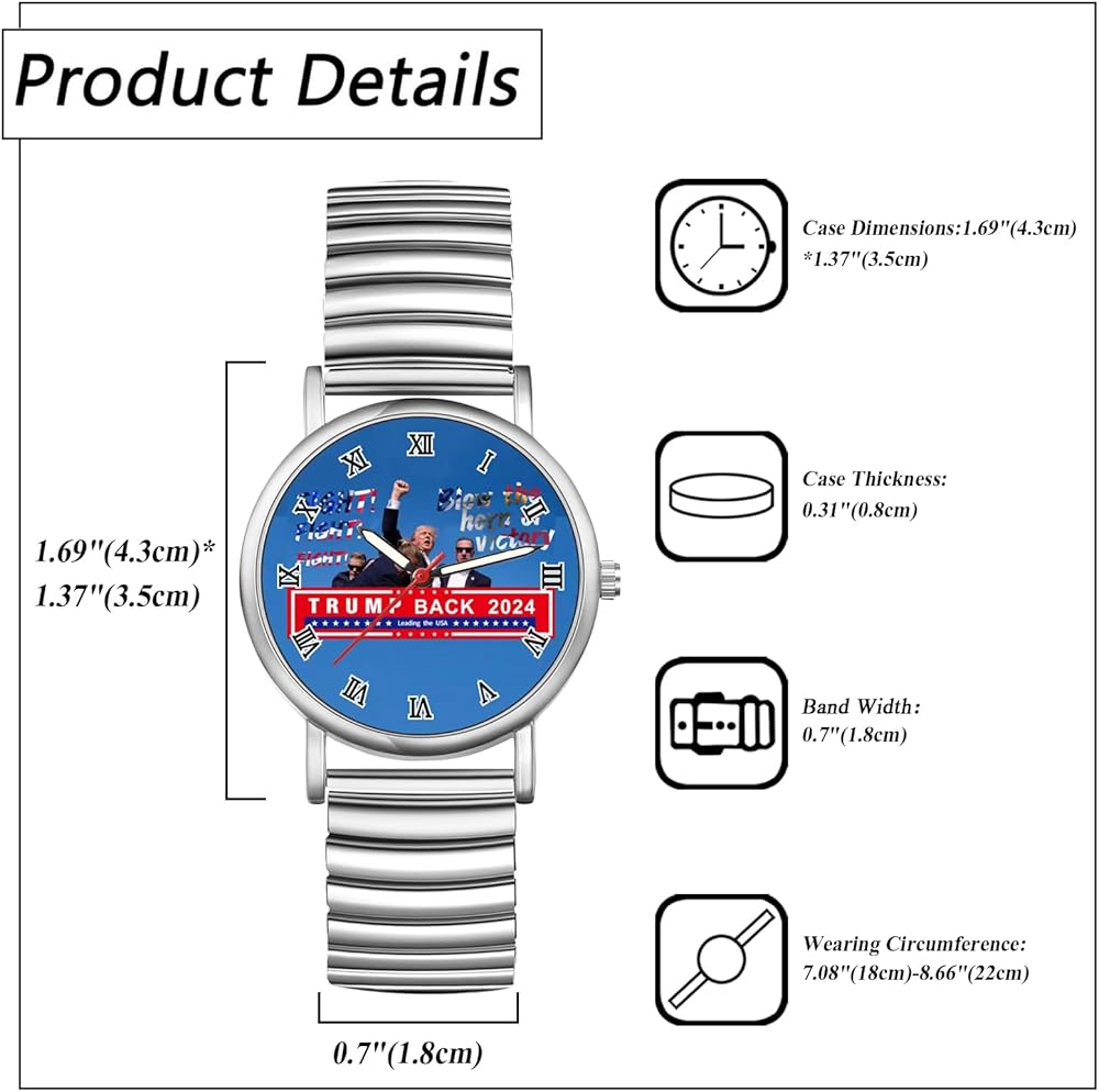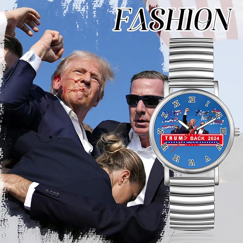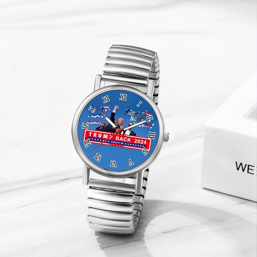 • EXCELLENT AFTER-SALE SERVICE -- Every package includes one trump watch, a blue velvet gift bag, and an extra battery. On the description page, you can see the instructions for changing the battery. 60-day 100% MONEY BACK or FREE REPLACEMENT guarantee. Please feel free to contact us if you have any questions.