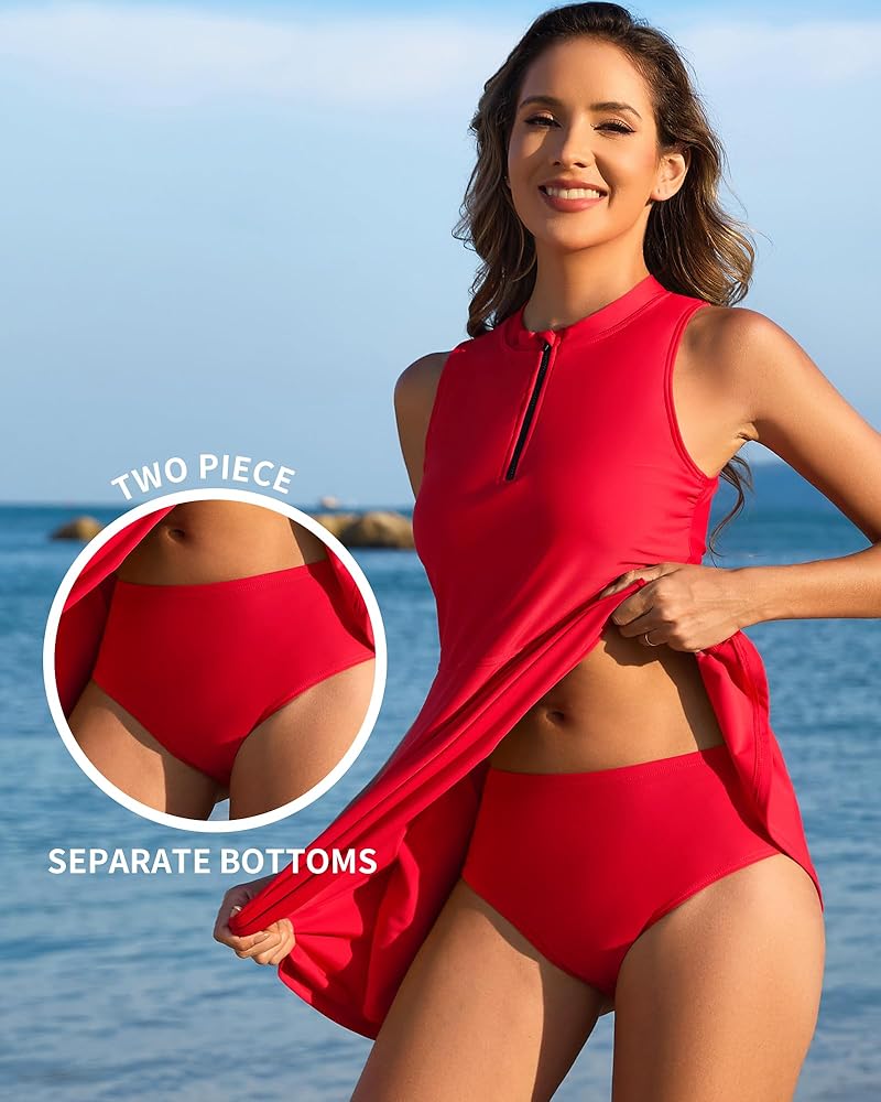 أجزاء سفلية منفصلة: تنورة ملابس سباحة مع أجزاء سفلية إضافية لتناسب منحنياتك بشكل أفضل، مما يسمح لك بالمشاركة في الأنشطة المائية بشكل مريح وآمن دون القلق بشأن التعرض