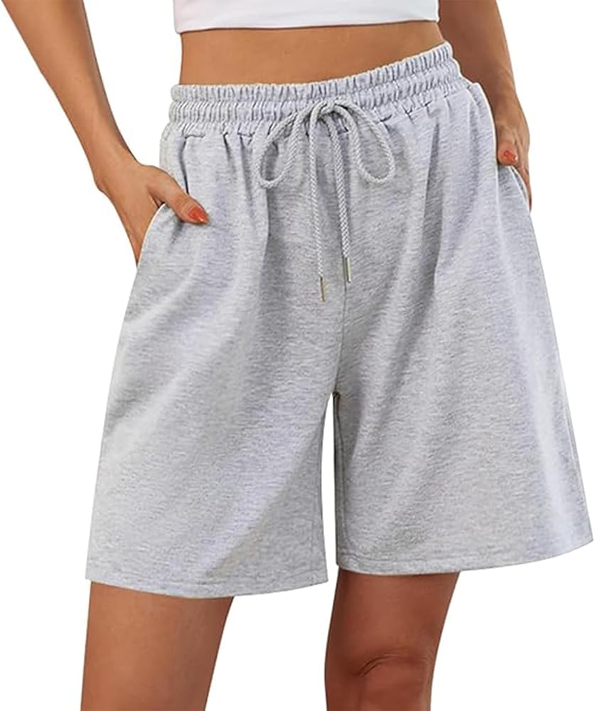 شورت نسائي للتمرين في صالة الألعاب الرياضية والجري وكرة السلة والعرق الرياضي وصالة اليوغا بالإضافة إلى حجم شورت برباط كاجوال للتمارين الرياضية مع جيوب ملابس صيفية فضفاضة ومريحة (رمادي، L)