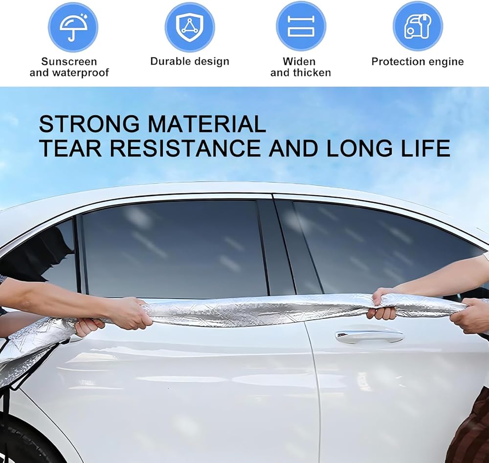 Design: This car cover is enlarged and thickened, with one-piece coverage to protect the hood. The rearview mirror shield is enlarged to protect the rearview mirror without affecting the opening and closing of the rearview mirror when parking.