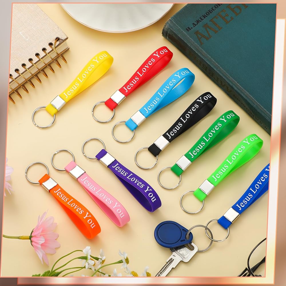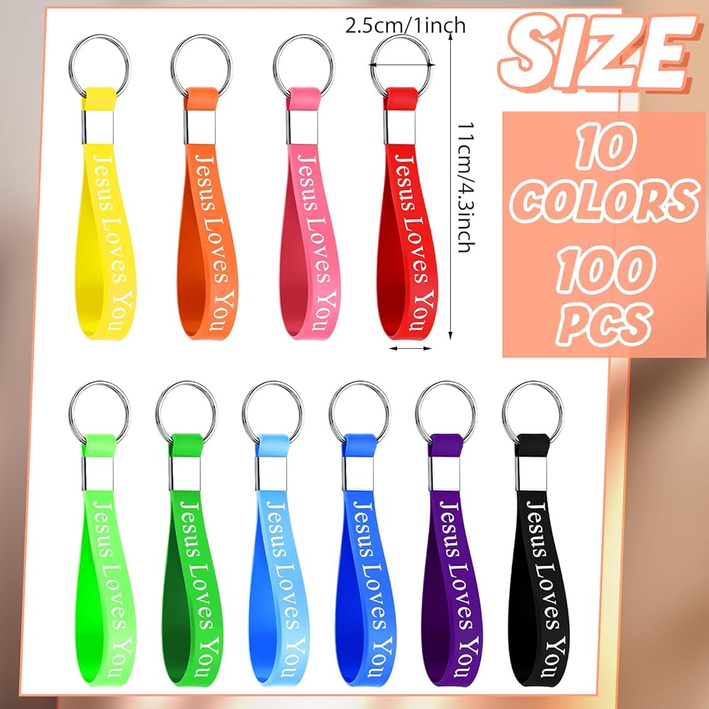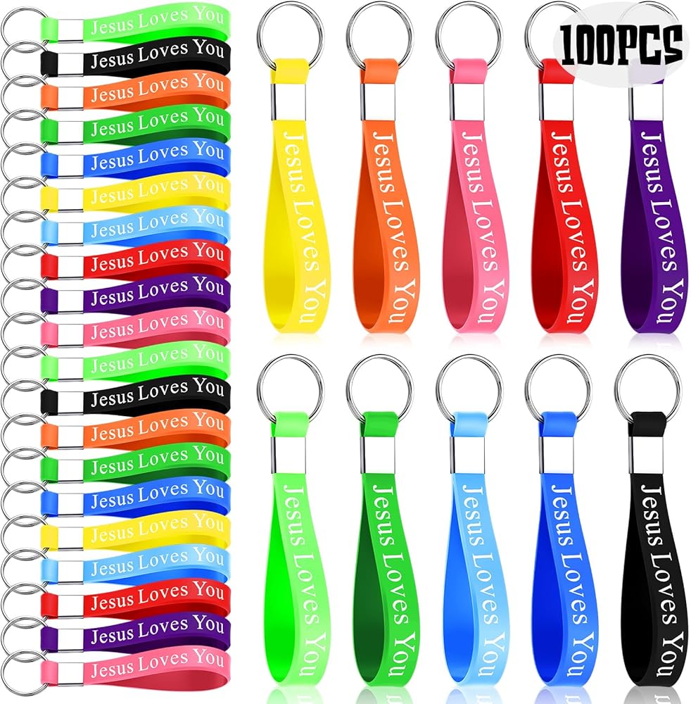 100 x Jesus loves you silicone keychains