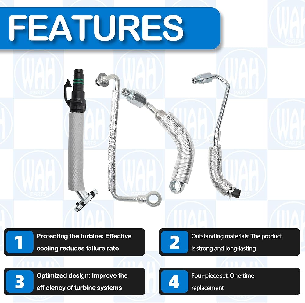 - التعبئة: 1 × أنبوب تصريف زيت توربو؛ 1 × أنبوب تغذية زيت توربو؛ 1 × خط خرطوم إرجاع سائل تبريد شاحن توربو؛ 1 × أنبوب خط تغذية تبريد شاحن توربو