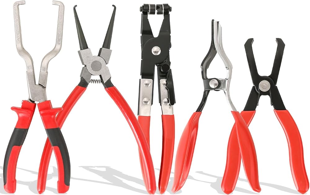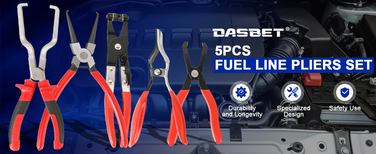 مجموعة كماشة خط الوقود 5 قطع من DASBET، كماشة إزالة الخرطوم، وفرجار فلتر الوقود، ومشبك مشبك أنبوب خرطوم، وزردية مشبك خرطوم مسطح، كماشة فصل 30 درجة، مجموعة كماشة خرطوم مشبك لصيانة السيارات