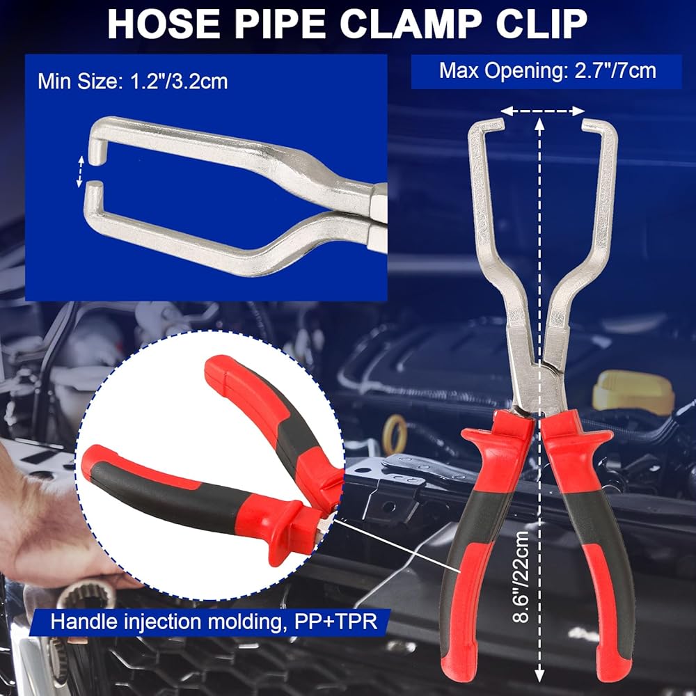 [كماشة إزالة الخرطوم] يمكن لكمدية إزالة الخرطوم بسهولة إزالة خزانات الوقود والمشعات وخراطيم الوقود وخراطيم المياه وخراطيم النقل والخراطيم المطاطية والمبردات بضغطة بسيطة على المقبض. وهي مصممة للعمل مع خراطيم يتراوح قطرها من 5/32 بوصة إلى 1/2 بوصة (4 مم إلى 14 مم). تسمح هذه الأداة بإزالة خراطيم الوقود ومختلف خراطيم المياه الصغيرة أو الزيت أو المكنسة الكهربائية أو السخان بسرعة دون إتلاف الموصلات، مما يضمن اتصالاً آمنًا وآمنًا.