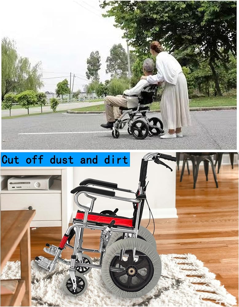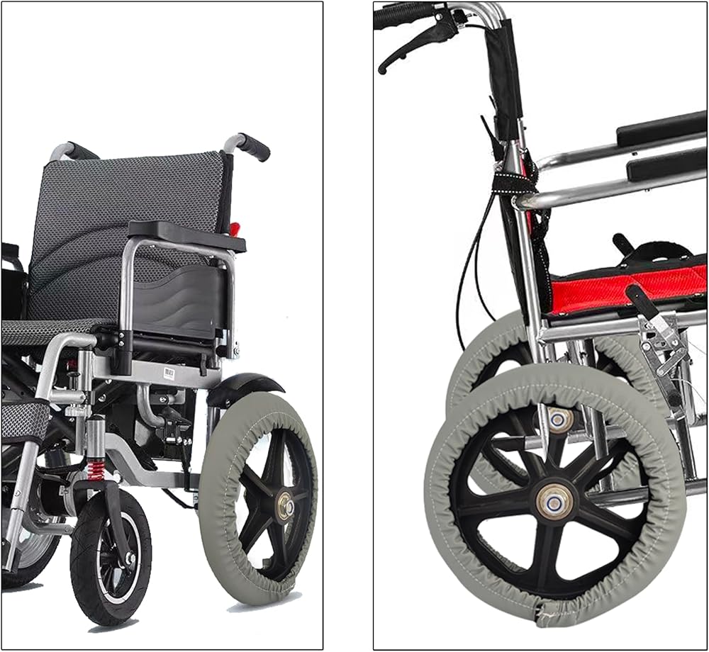 【Universal Design】 Our tire covers are compatible with the 12 inch rear wheels of most wheelchairs, elastic and retractable, Convenient installation and disassembly.
