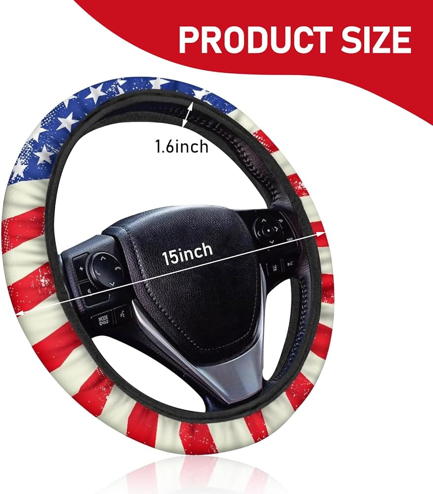 Washable: After purchase, you will receive 1 piece of 14.9" American flag steering wheel cover, which fits the original steering wheel tightly and is not easy to slide back and forth, improving the driving experience. Washable material, not easy to shrink and deform, and can be reused for a long time.