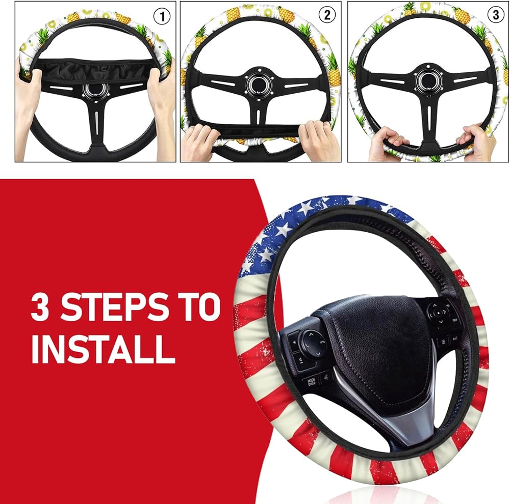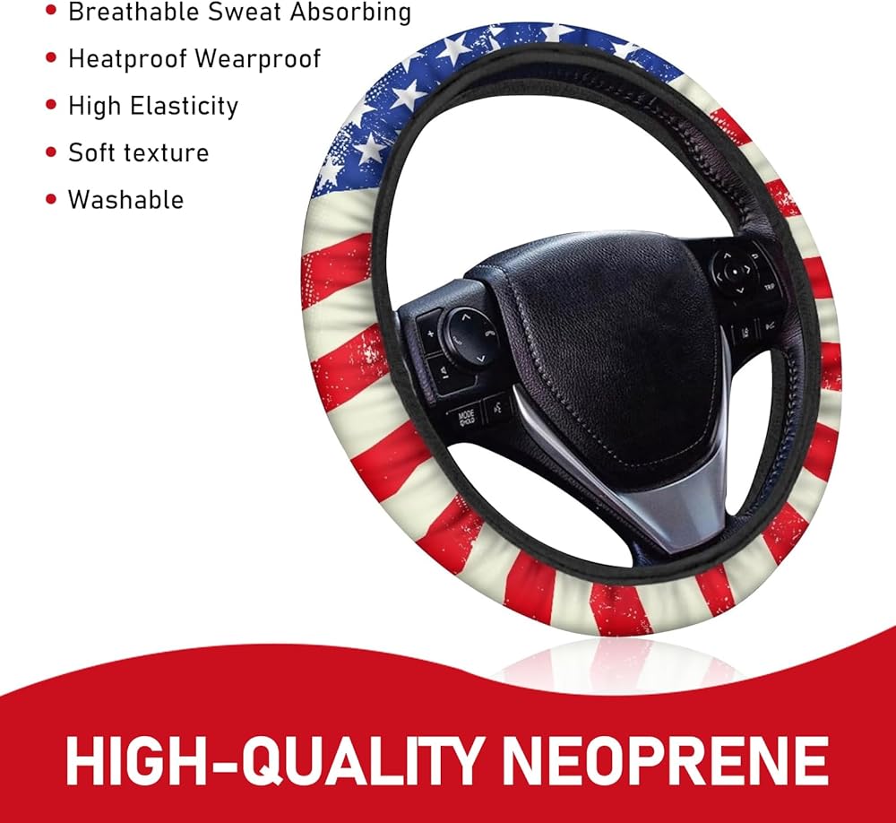 Durability: The steering wheel cover adopts high-quality workmanship, brings excellent touch, exquisite stitching, and is not easy to fall off. Wear-resistant, the American flag pattern is not easy to fade, and maintains a good texture.