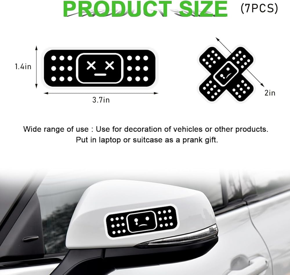 【Funny Decoration】: These band-aid cartoon stickers is primary designed to decorate your vehicles, including interior and exterior. When you're driving down the road with colorful bandage decals adoring your cars, a touch of fun and lighthearted vibe will be added to your daily commute.