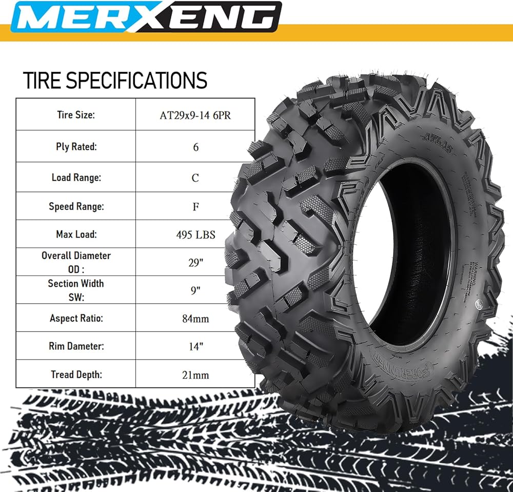 • حجم إطارات UTV للإطارات [قطعتان AT29x9-14 & قطعتان 29x11-14 6Ply] مصممة للتركيب على حافة مقاس 14 بوصة.