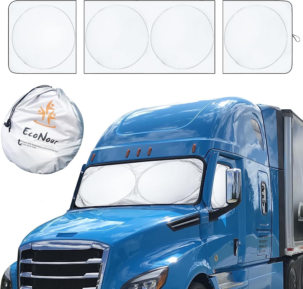 حماية كاملة من أشعة الشمس: مظلات EcoNour Auto Sun لشاحنة الزجاج الأمامي، مصممة خصيصًا لـ Cascadia Freightliner، مصنوعة من بوليستر 240T متين يغطي الزجاج الأمامي والنوافذ الجانبية مما يوفر ملاءمة مريحة عبر الزوايا، وتحجب الأشعة فوق البنفسجية من الشمس والأشعة الحرارية، وحماية كاملة للخصوصية. لسائقي الشاحنات.