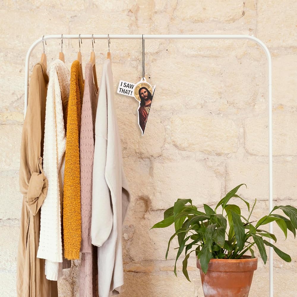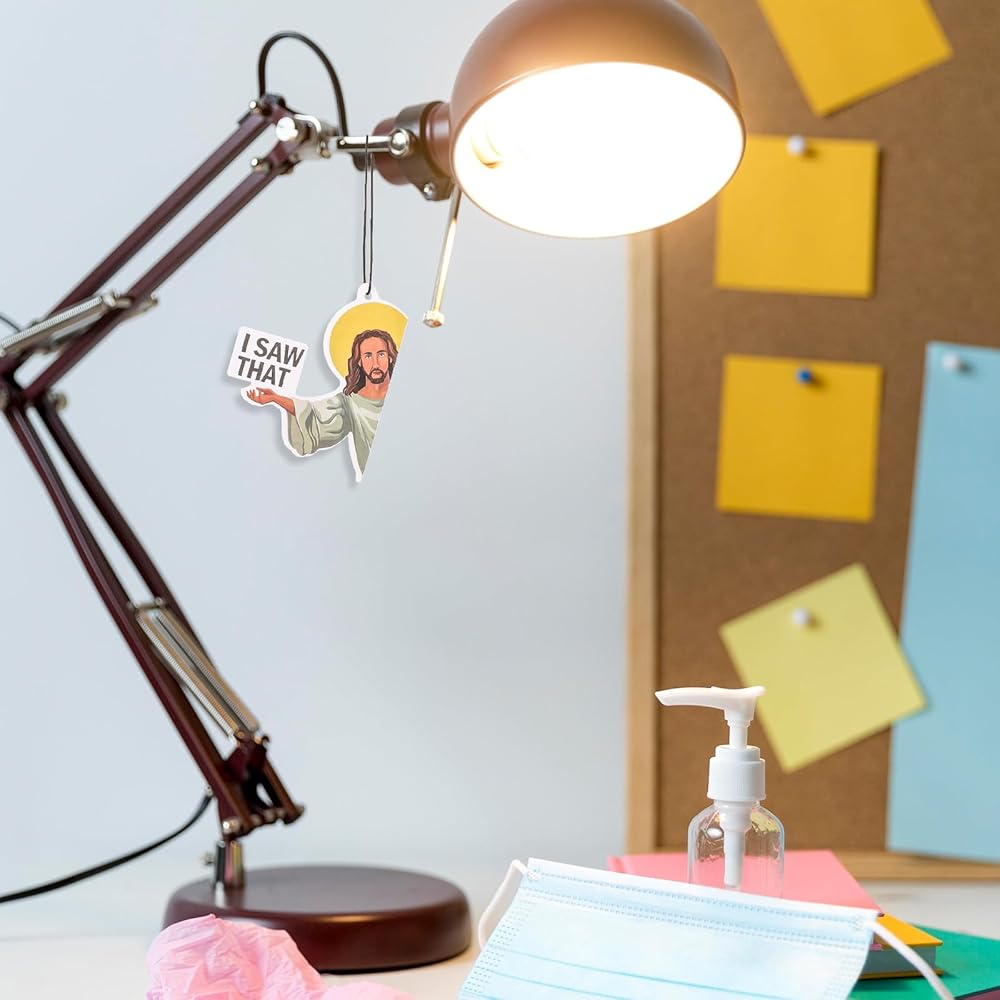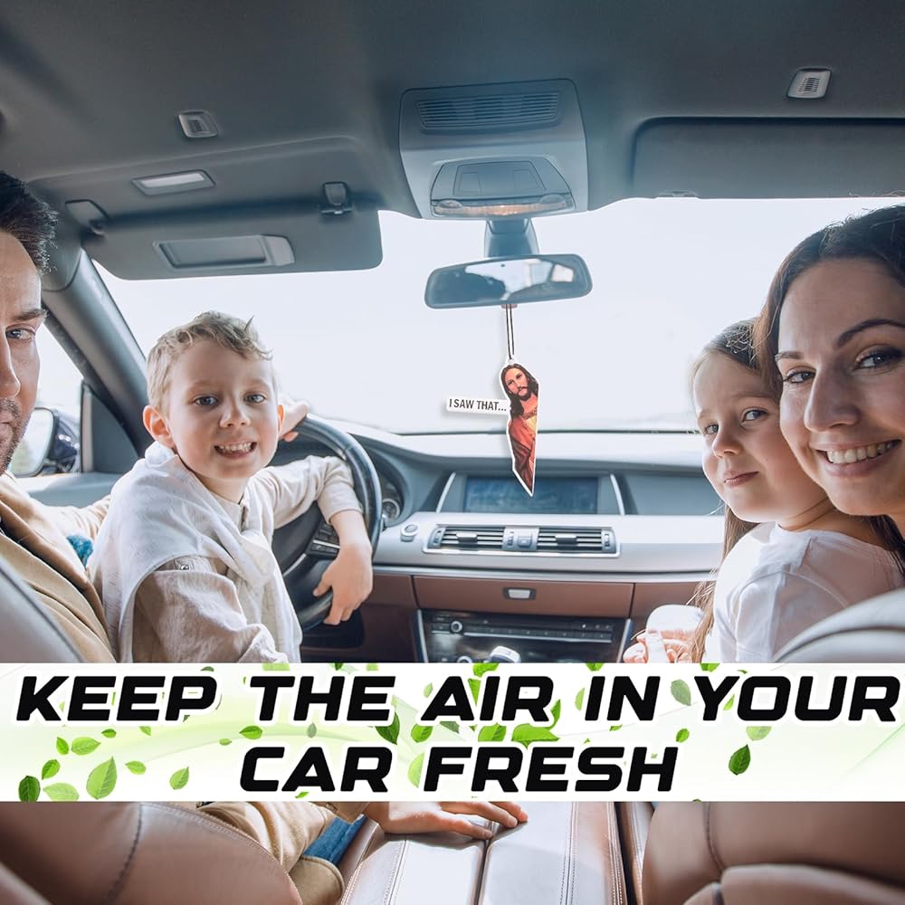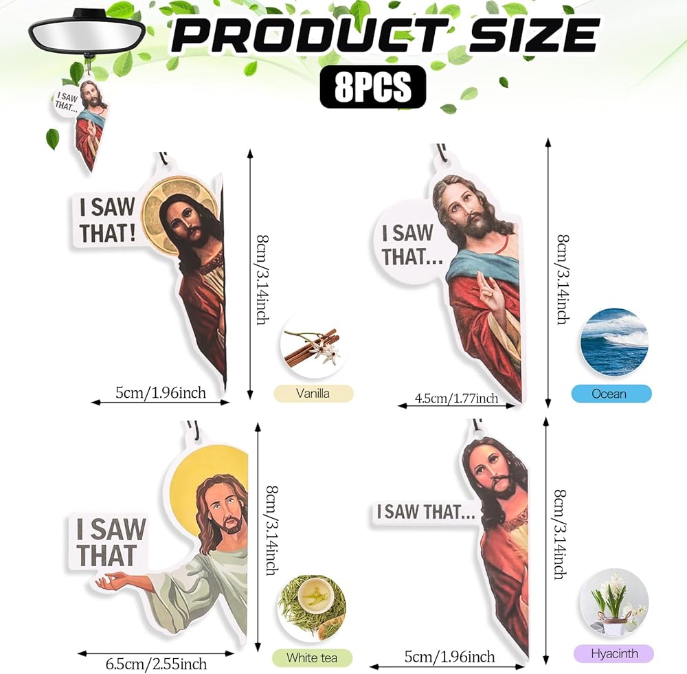 Jeffdad 8 قطع Jesus I Saw That معطرات هواء السيارة، زينة يسوع المعلقة المضحكة لمعطرات الهواء لتزيين السيارة، بطاقات معطرة لشريحة العطر للسيارة الداخلية والمرايا المنزلية وهدايا الديكور المعلقة
