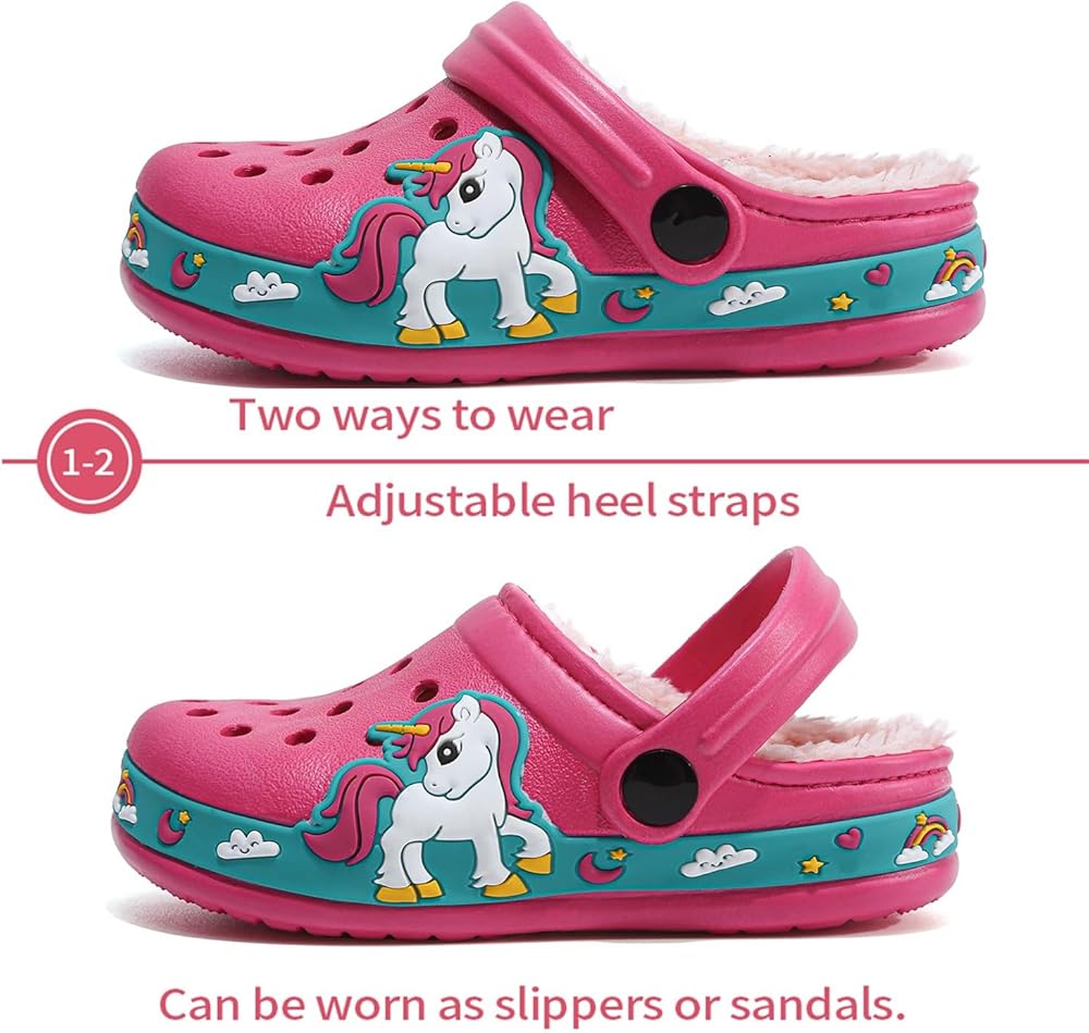 ملاءمة مبطنة كلاسيكية: قباقيب مريحة مع زغب مبطن بشكل ممتع هي النعال التي يحتاجها الأطفال للحفاظ على الشعور بالنشاط طوال الموسم. تساعد أحزمة الكعب التقليدية الأطفال على سهولة الارتداء والخلع. نوصي باختيار مقاس أكبر للحصول على مساحة إضافية صغيرة.