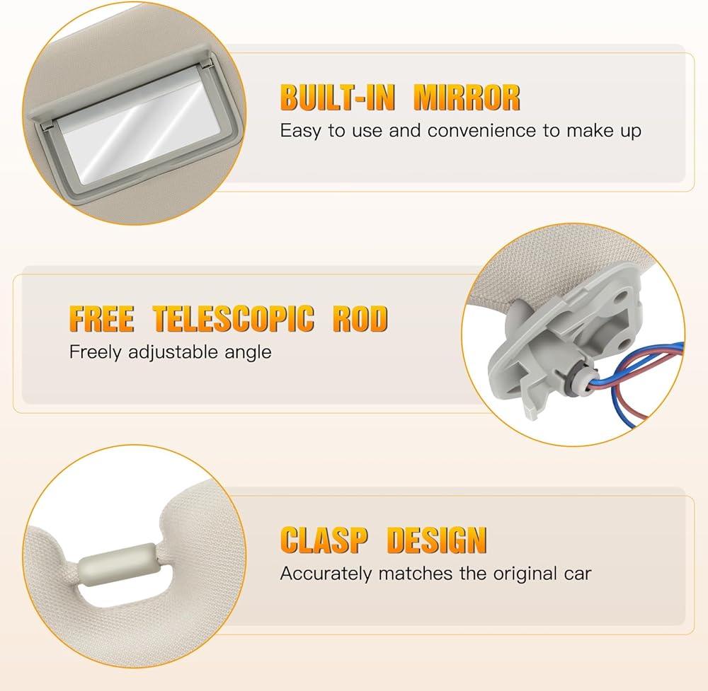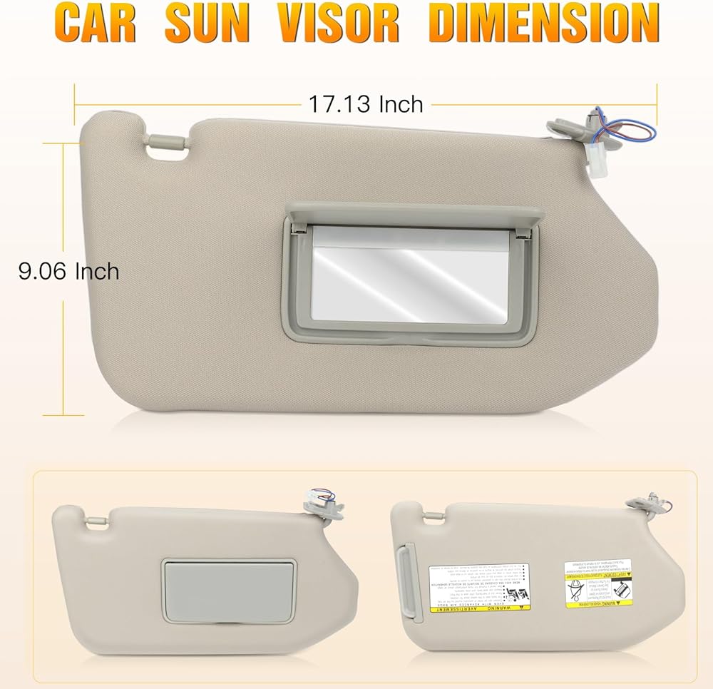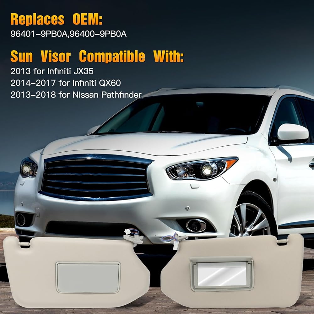 واقي من الشمس على الجانبين الأيسر والأيمن مع فتحة سقف مناسب لـ 2013-2018 لنيسان باثفايندر 2013 لإنفينيتي JX35 2014-2017 لإنفينيتي QX60 تان بيج حاجب الشمس مع استبدال الضوء 96401-9PB0A، 96400-9PB0A
