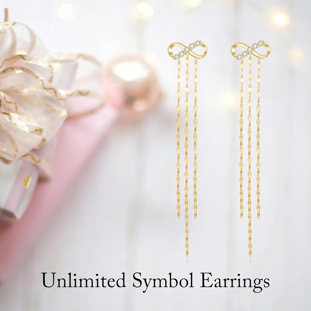 أقراط سيسجيم 14 قيراط من الذهب المويسانتي إنفينيتي المتدلية للنساء، سلسلة طويلة من الذهب عيار 14 قيراط هدايا مجوهرات الحب لها