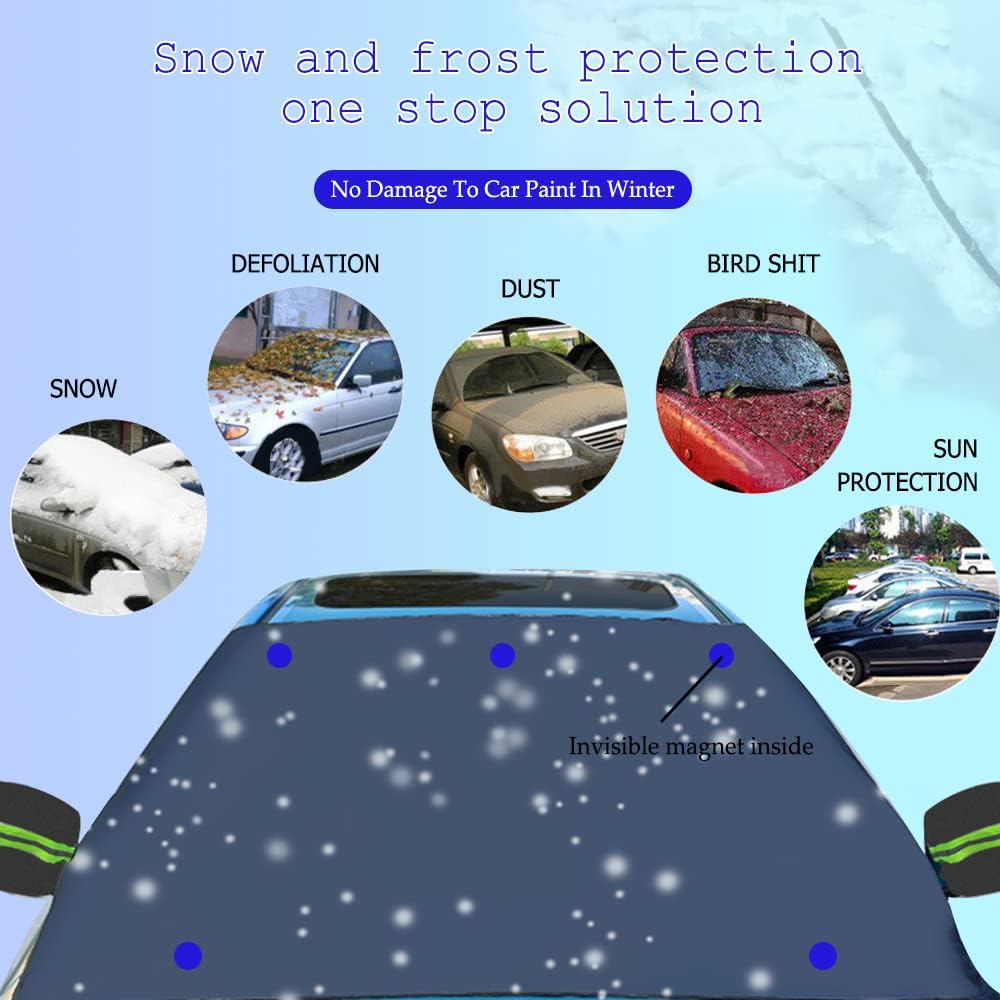 [All weather oxford cloth car snow cover]: The car window cover provide dew proof in spring, sun proof and ultraviolet proof in summer, frost proof in autumn, snow proof in winter, daily dust-proof. The rear-view mirror has a reflective warning strip, which can play a warning role at night, it can be clearly visible at night or in snowy weather. With the multi function protection, make your car can be parked outdoors all year round.