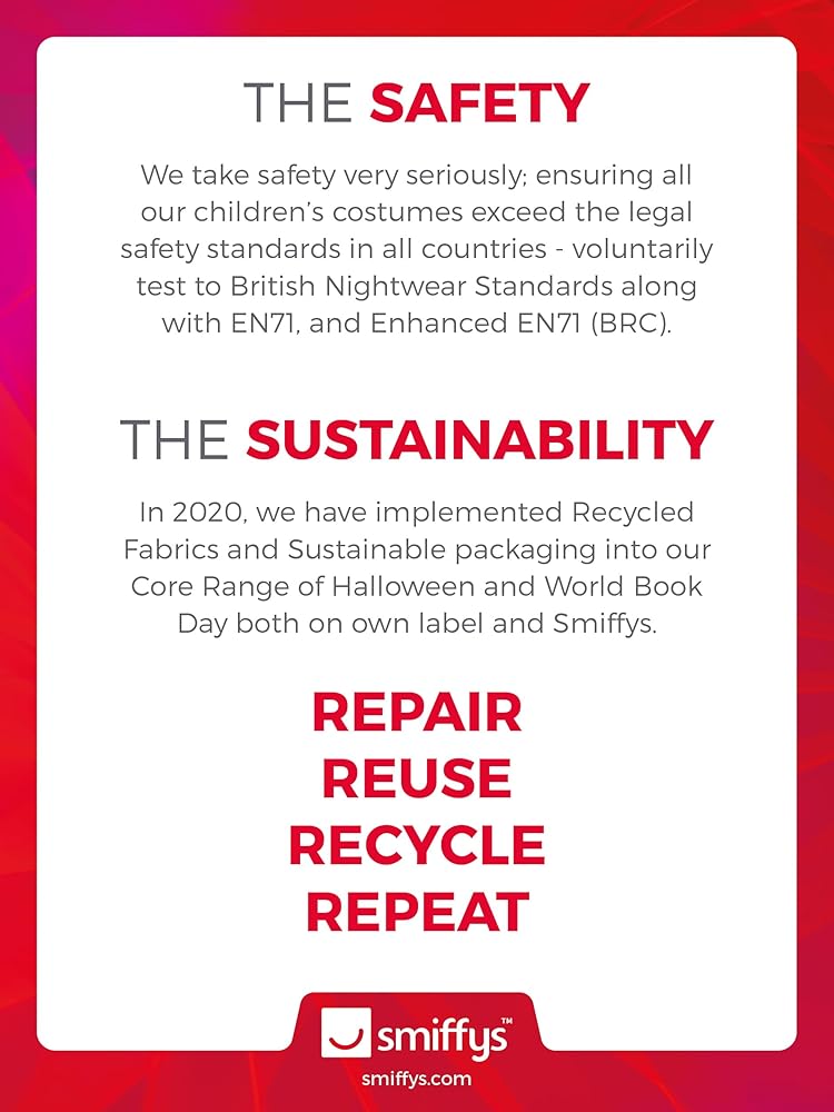 - يرجى ملاحظة أن جميع منتجات Smiffys لدينا ستأتي دائمًا في عبوات كاملة تحمل العلامة التجارية Smiffys.