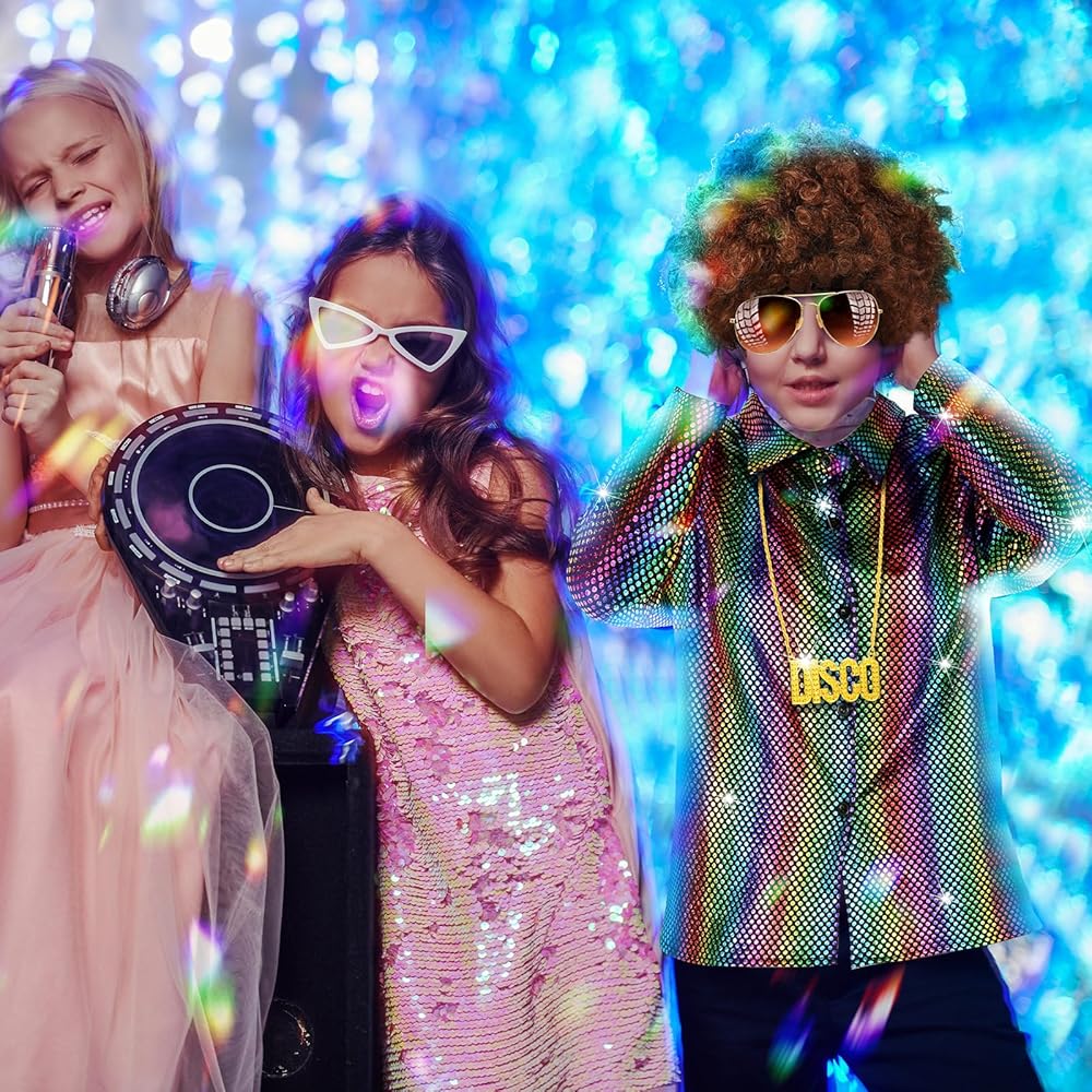 • مواد عالية الجودة: قمصان ديسكو للحفلات الراقصة للأطفال مصنوعة من الحرير الجليدي، والختم، والليزر، وناعمة ومريحة؛ يجب غسل قمصان الستينيات والسبعينيات والثمانينيات من القرن الماضي بالماء البارد باستخدام منظف خفيف، ثم تجفيفها بالتعليق، وهي مناسبة للحفلات التنكرية ذات الطابع الخاص، واحتفالات الهالوين وغيرها من المشاهد؛ شعر مستعار بني للأولاد مصنوع من قماش مرن، مع بعض التمدد، يمكن أن يمنحك تجربة استخدام مريحة