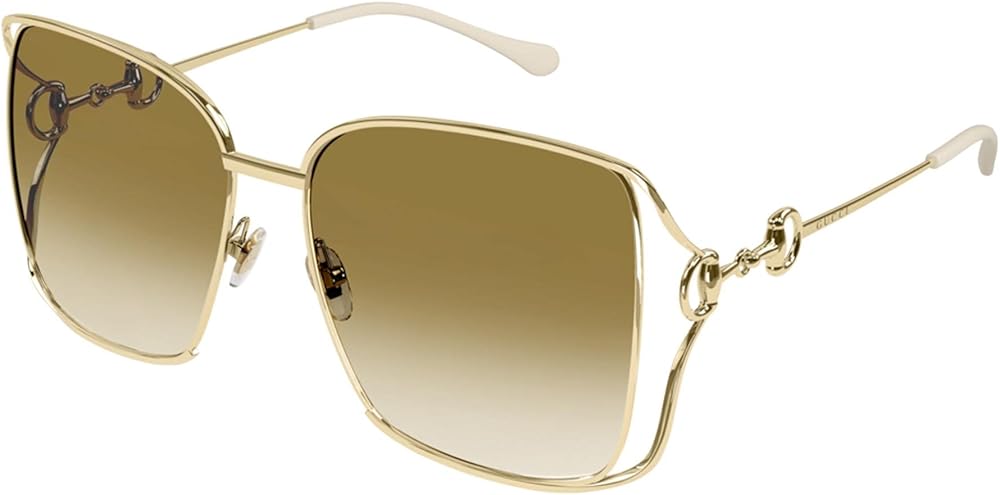 Gucci GG1020S sunglasses includes the Gucci logo on the temple. This Gucci GG1020S metal full rim square shape sunglasses made for women. Gucci iconic signatures are merged to create a unique construction featuring a bold fork temple and a new Horsebit hinge. A collection with vintage inspired shapes enriched with shiny materials. A full metal oversize squared shape. Horsebit sign paired with a discreet Gucci Lettering Logo engraved on the temples.