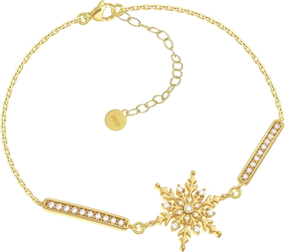 • Quality Material - Snowflake gifts for women meticulously crafted from premium 925 sterling silver, enhanced with 16K gold plating. The distinctive design incorporates gold-plated sterling silver chain. Nickel-free, lead-free, and hypoallergenic, it is ideal for daily wear, combining style and comfort effortlessly.