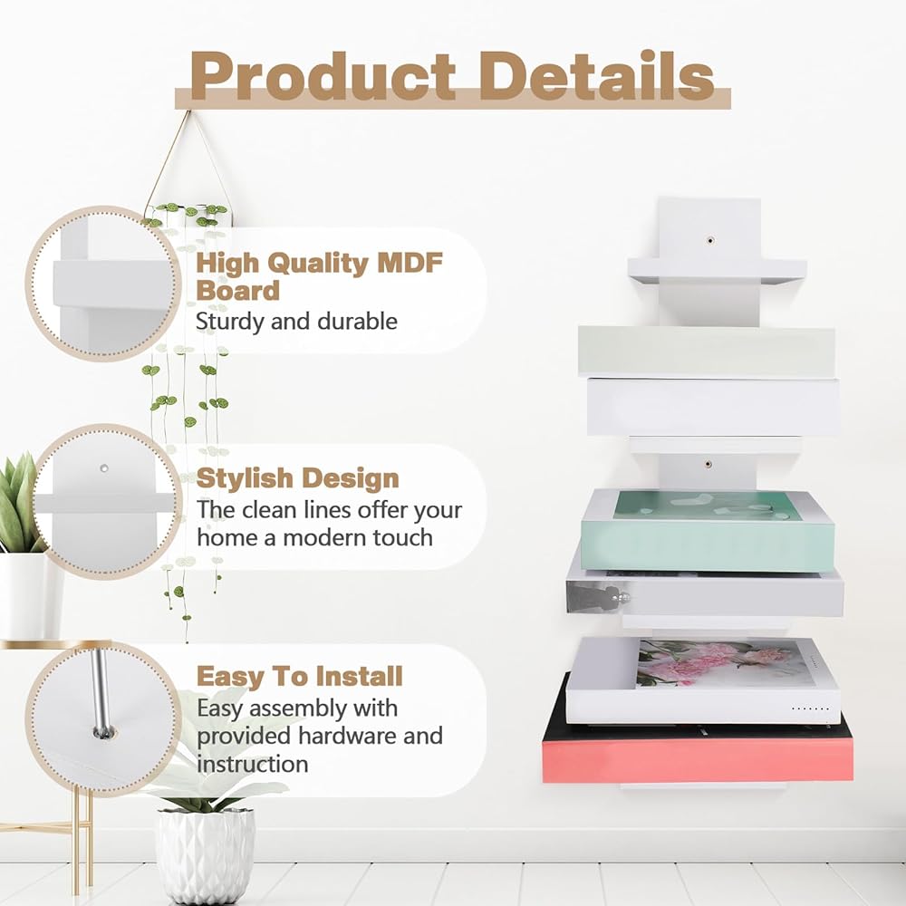 No more complicated assemblies. Our white vertical column shelf is easy to install on your wall. You can easily and quickly install this bookshelf