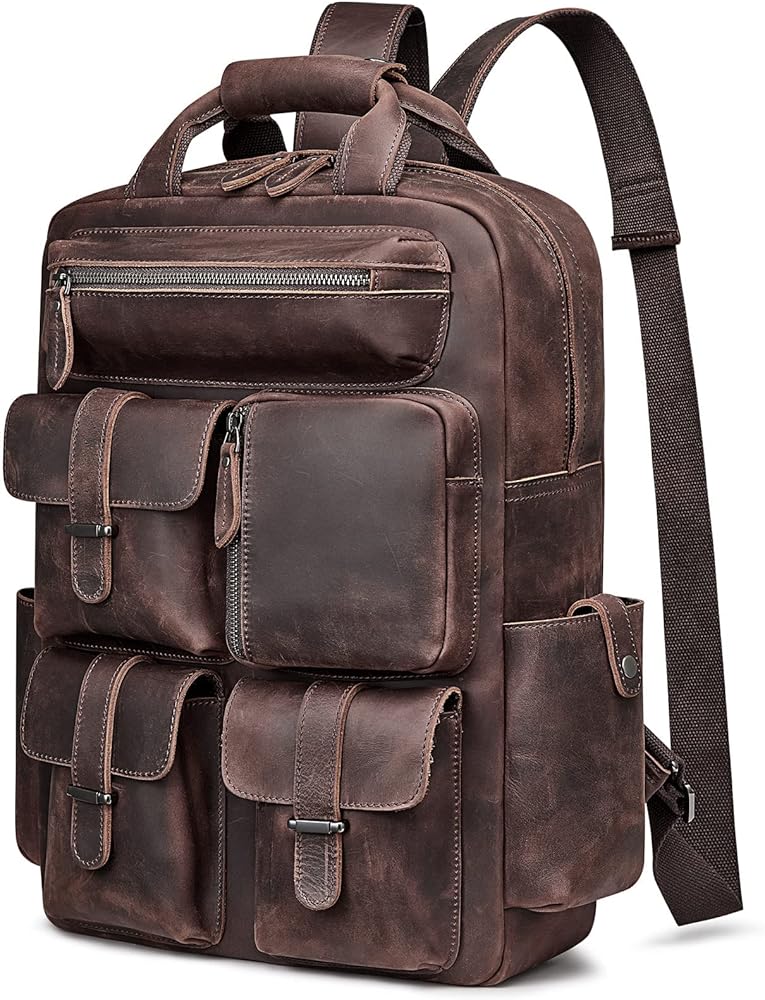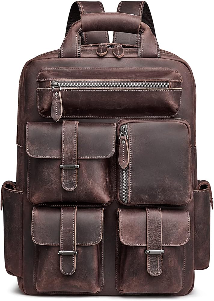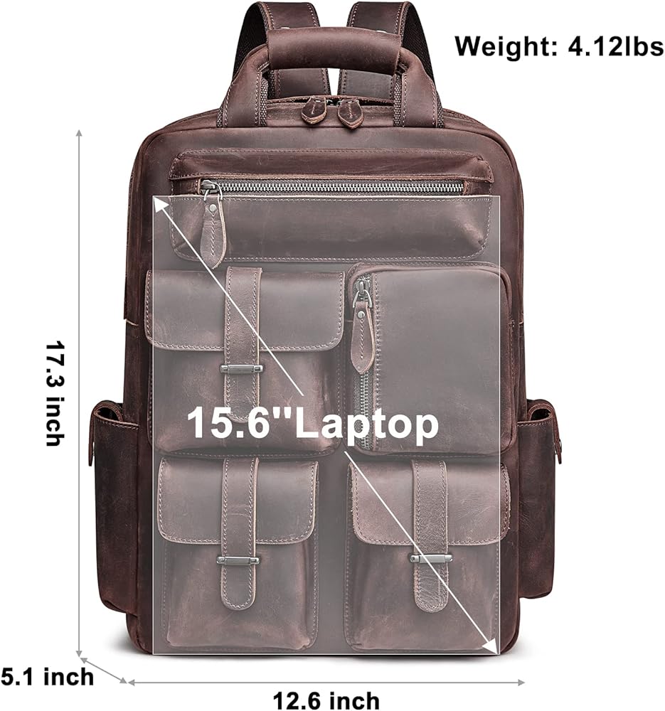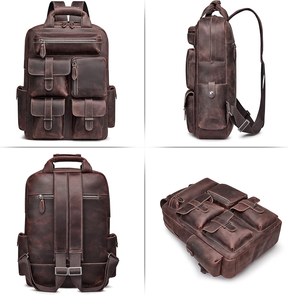 المواد: حقيبة الظهر الجلدية هذه مصنوعة من جلد BUFFALO المتين وأجزاء صلبة مقاومة للصدأ ذات لون نحاسي عتيق كمواد. يحتوي كل مقبض وحزام على خياطة ثلاثية معززة وأظافر معدنية، مما يجعل هذه الحقيبة أكثر قوة ومتانة.