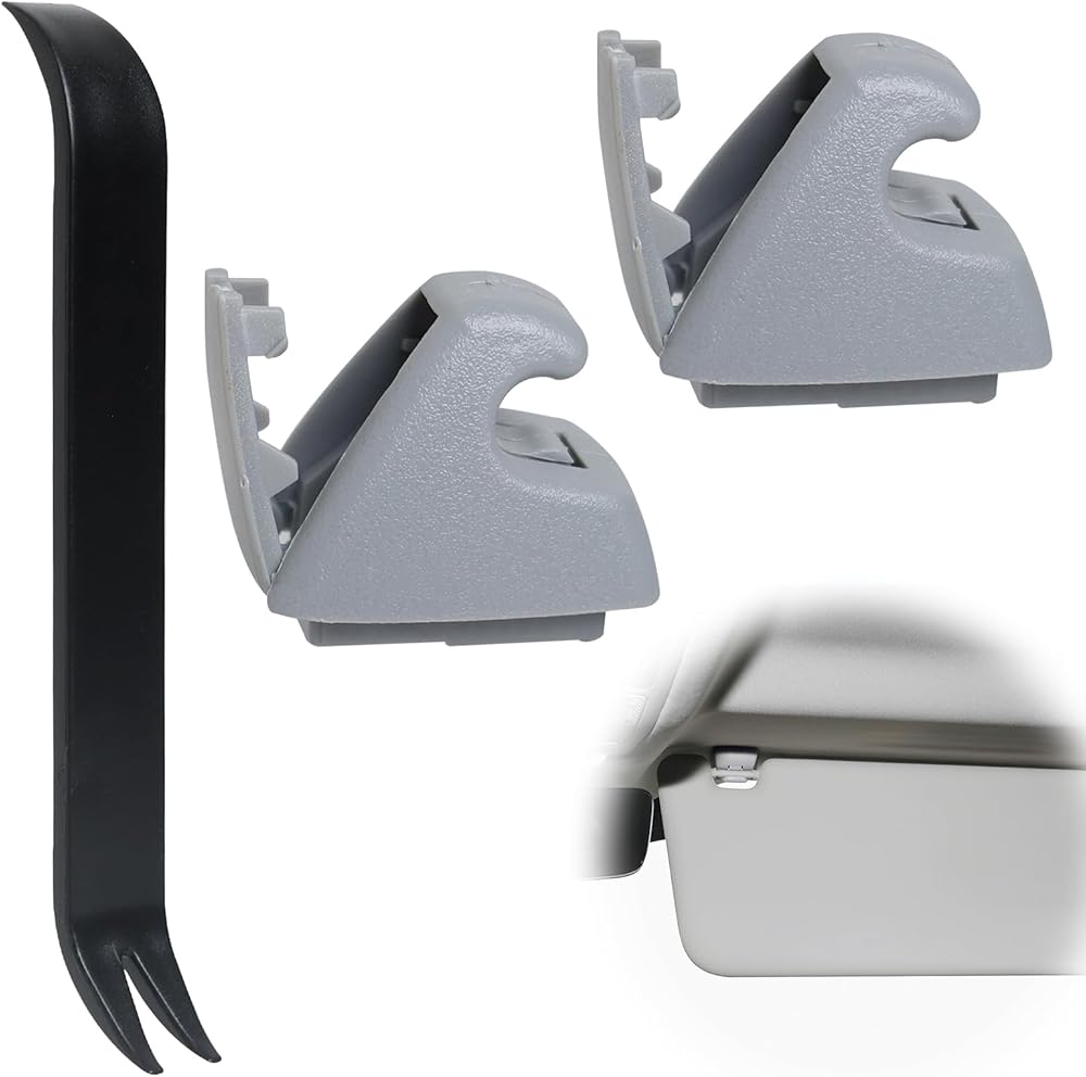 قطعتان من مشابك واقي الشمس متوافقة مع تشيفي سيلفرادو 1500 كروز سونيك سبارك تاهو جي إم سي سييرا 1500 يوكون بويك فيرانو OEM الجزء #95994975 95994976 (رمادي)